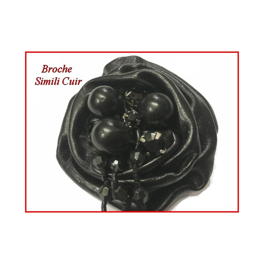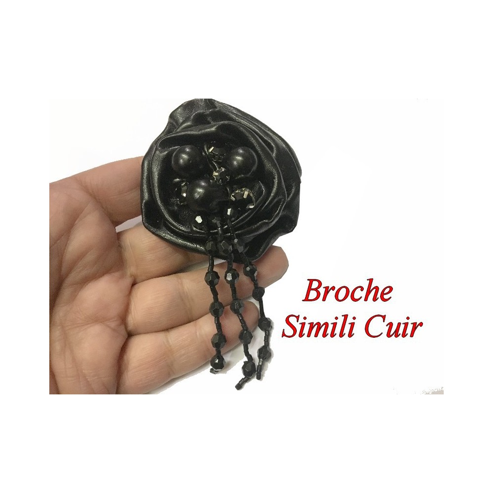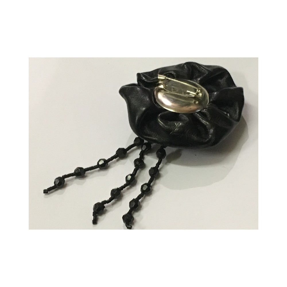Très joli broche en forme fleur en simili cuir noir pour la décorations de vetements, tailleurs, robes, chapeaux, ceintures.