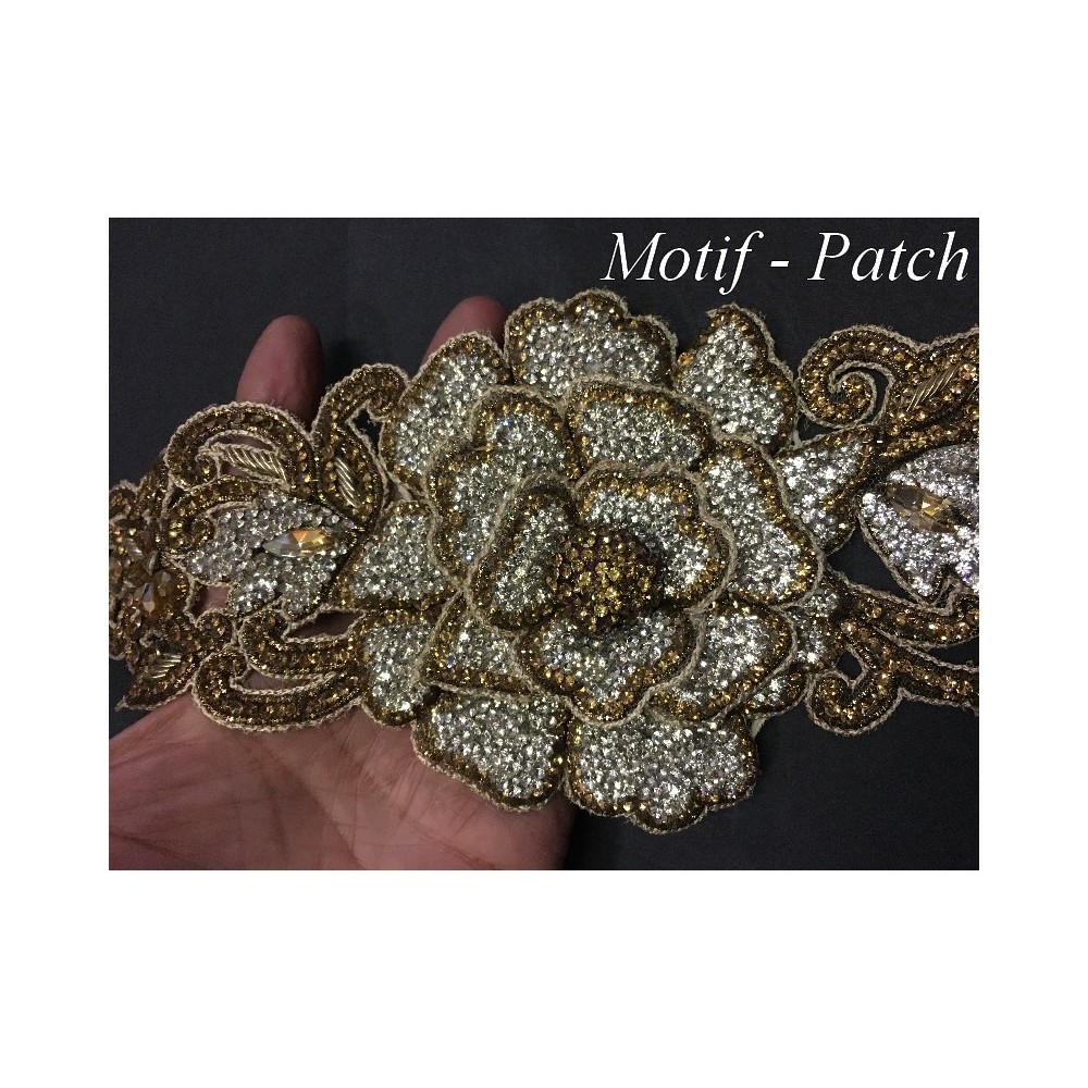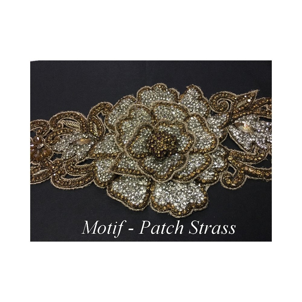 Applique, motif entiérement strassé en doré et argent pour ceintures, customisations.