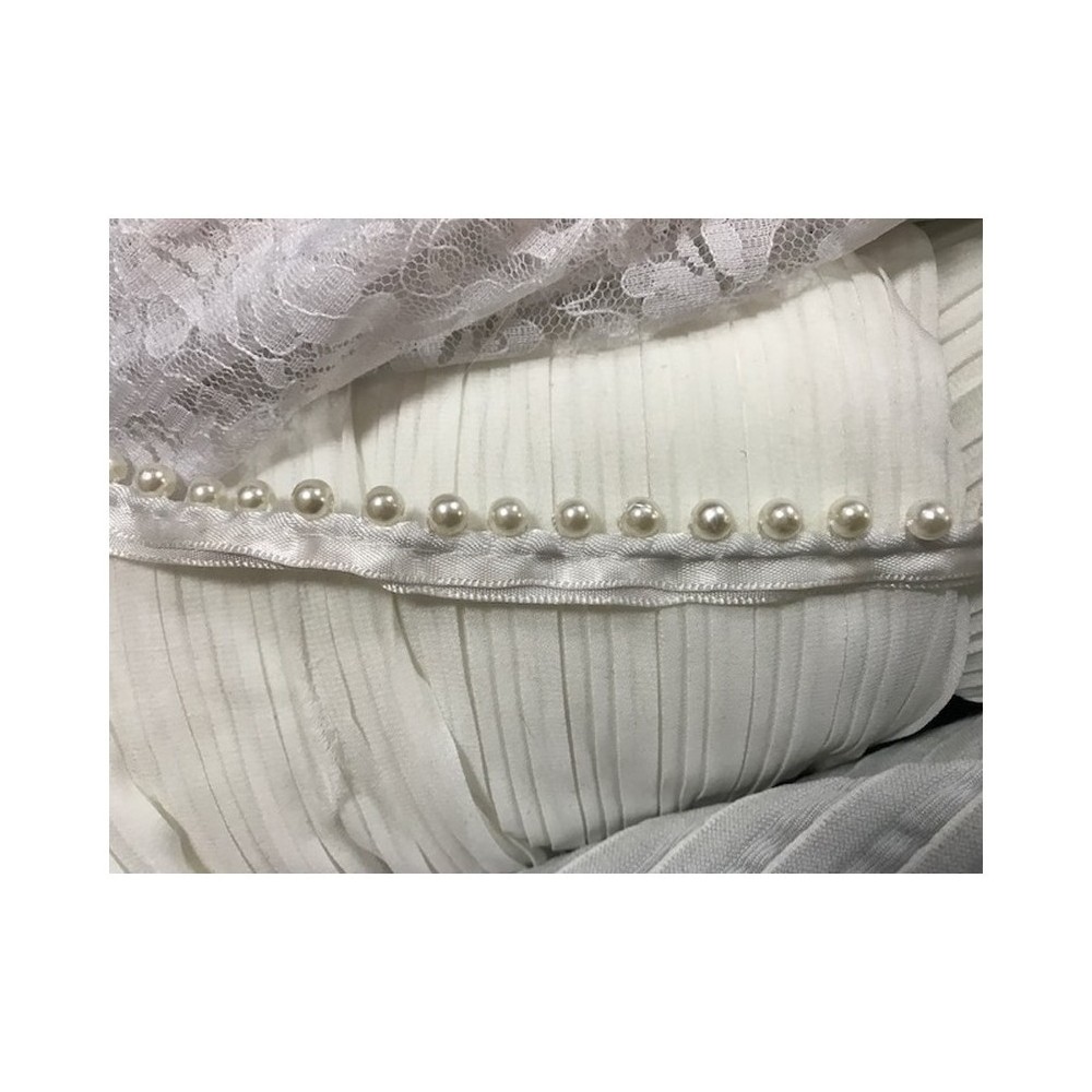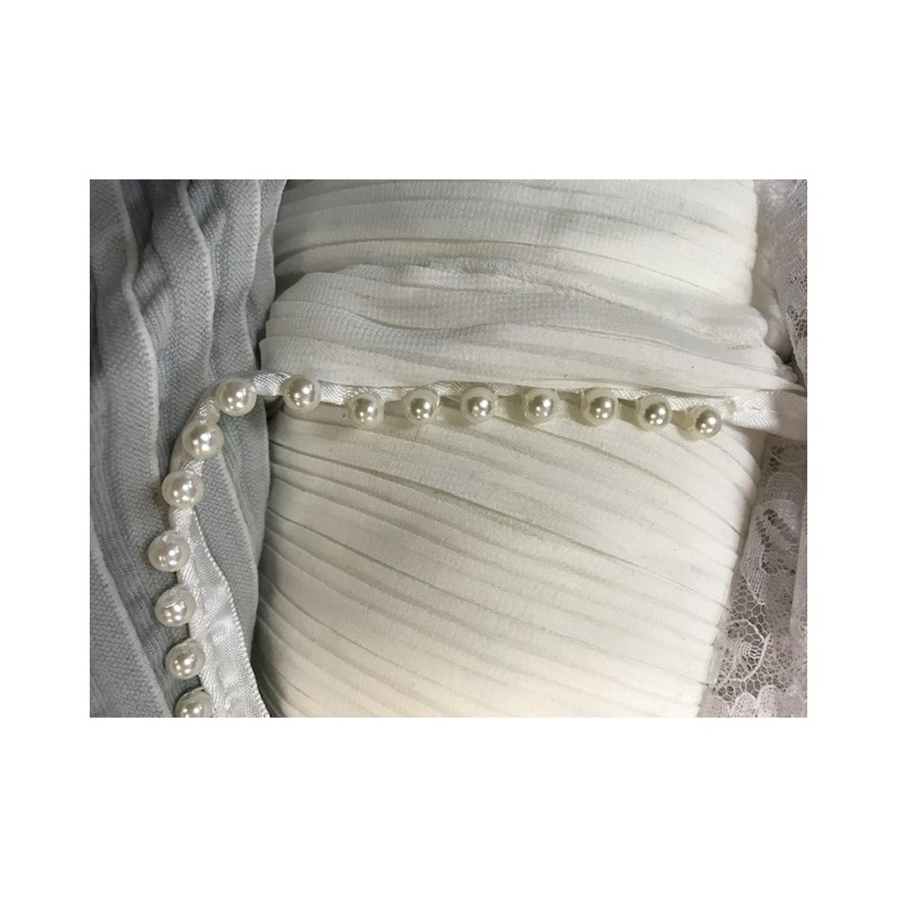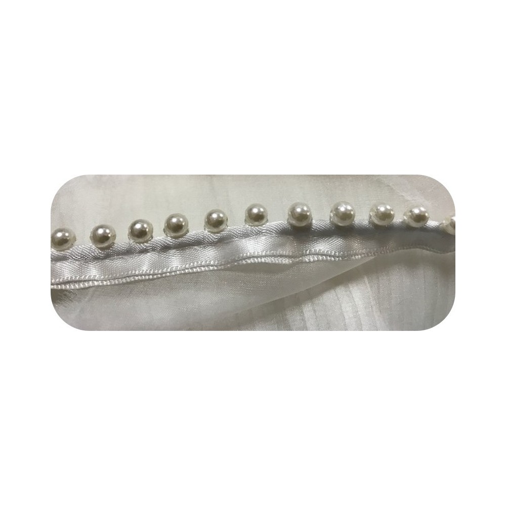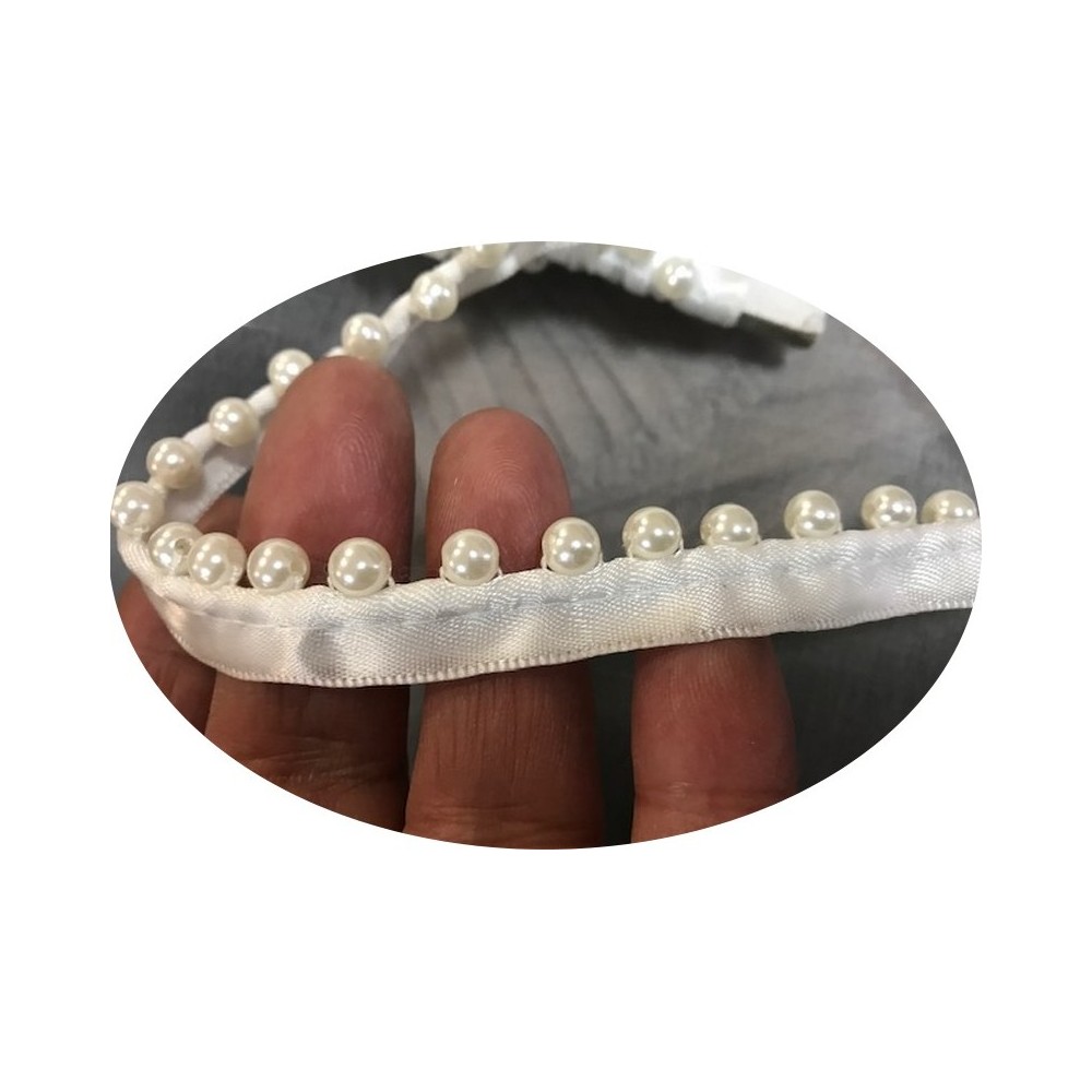 Galon perles passepoil sur satin blanc au mètre en 15 mm à coudre orné de perles de culture blanches,