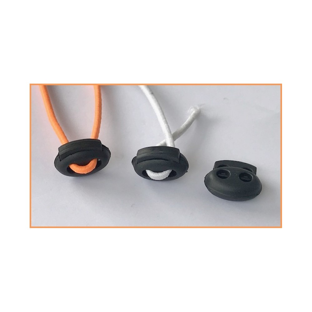 Bloc-cordon avec 2 trous pour bloquer, finitions de cordon en élastique ou en coton, ou lacet