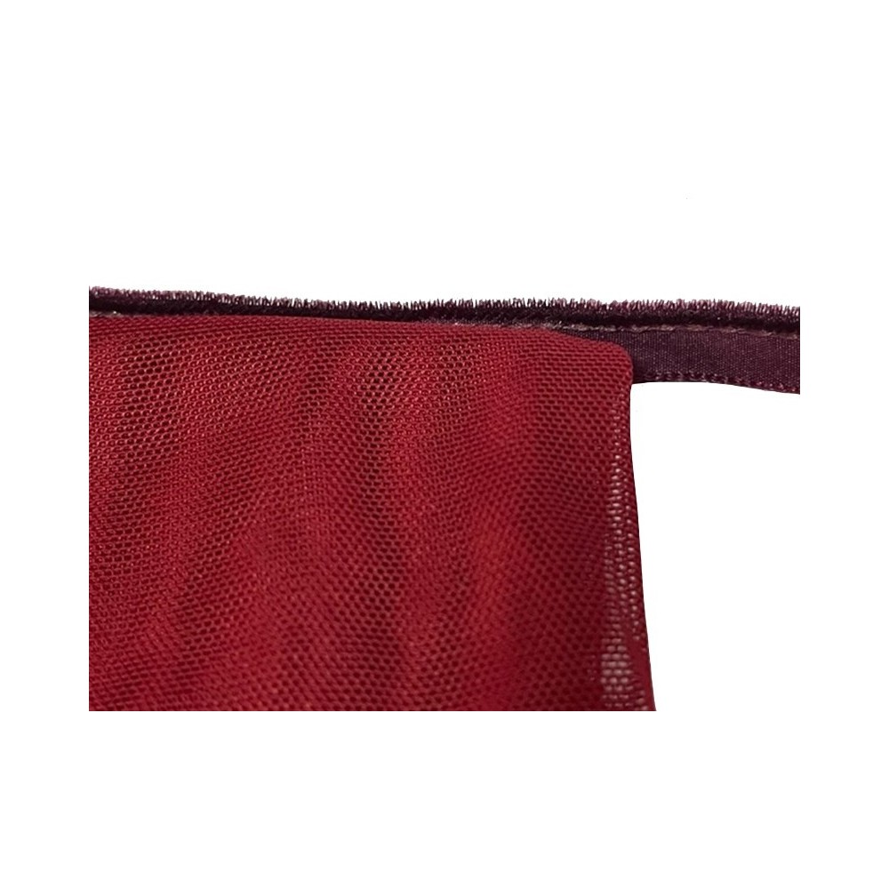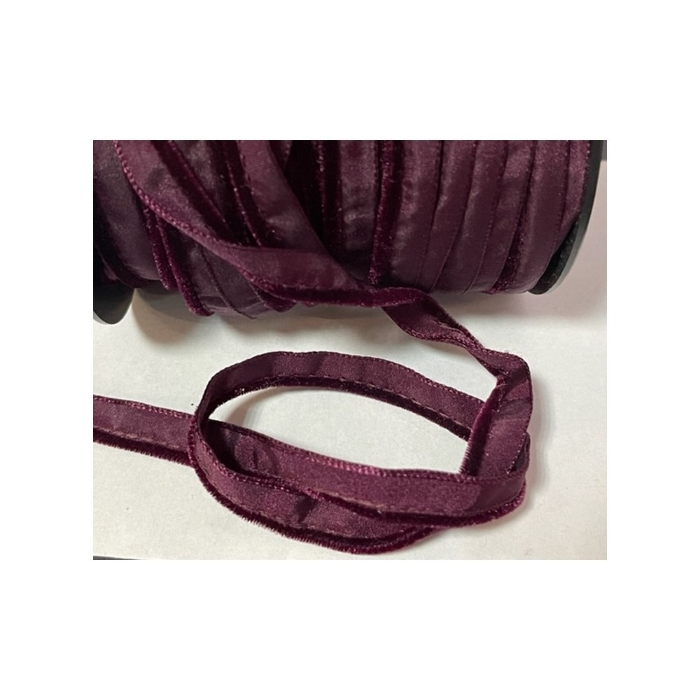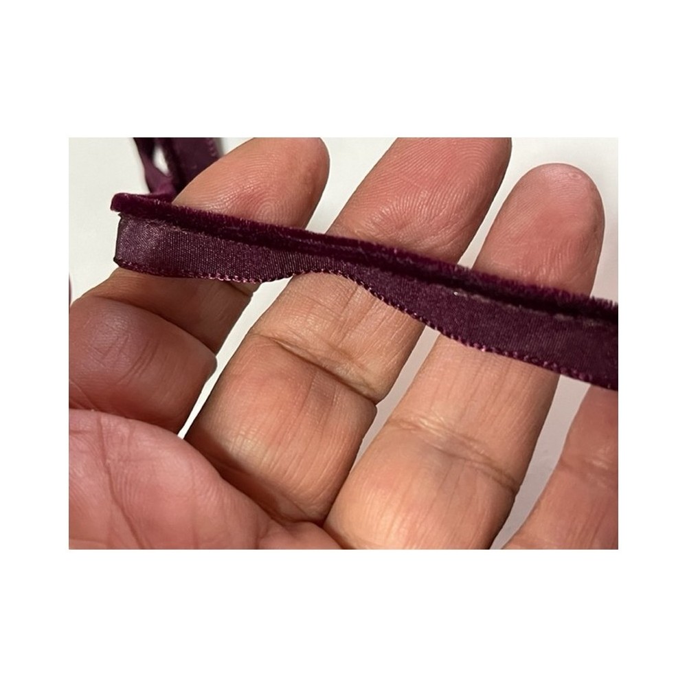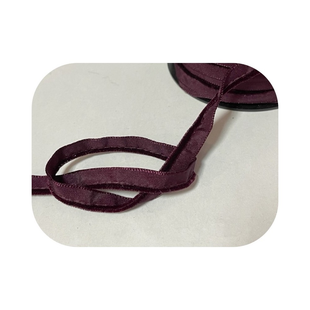 Ruban bande passepoil en velours en couleur bordeaux lie de vin sur un pied en nylon à coudre.