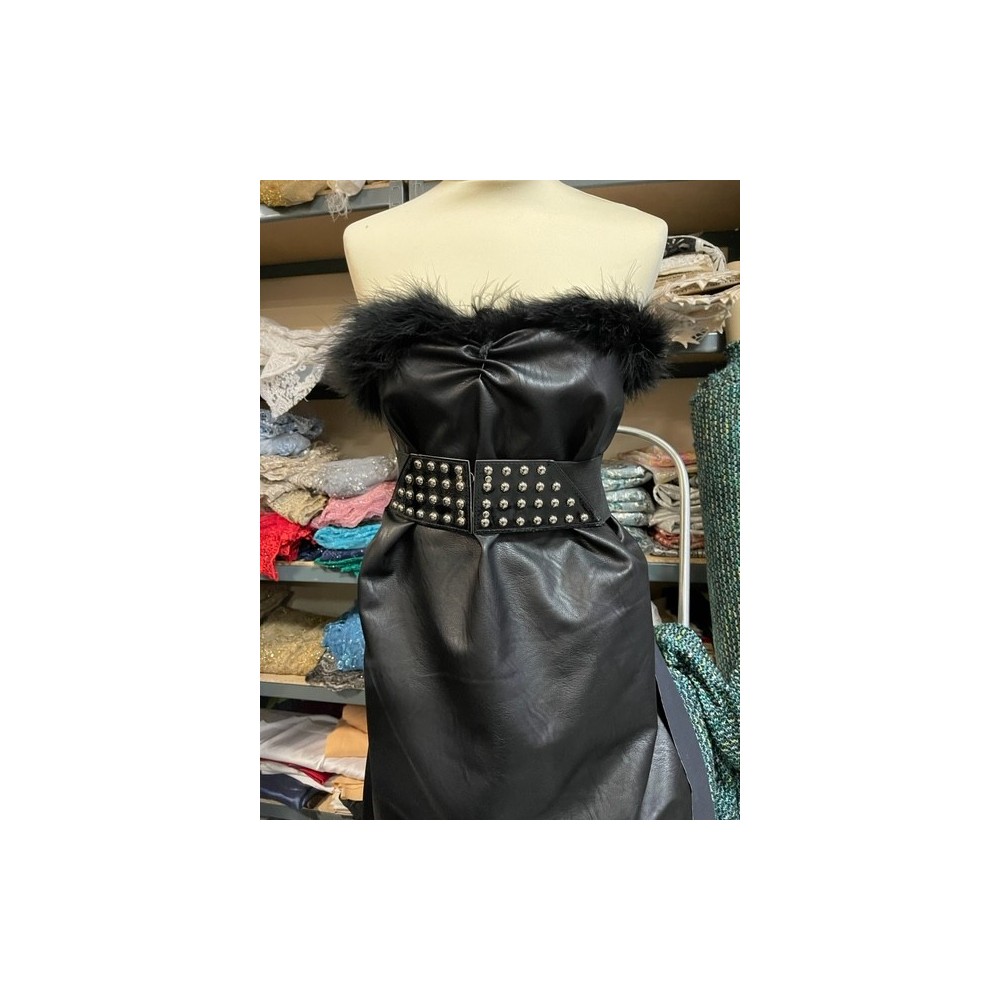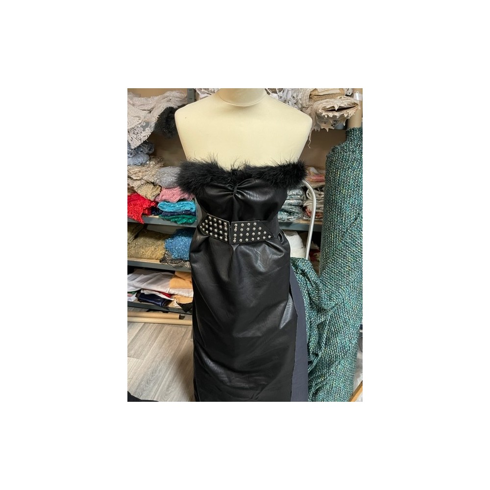Fourniture mercerie passepoil en imitation cuir noir mat pour habillement et lingerie.