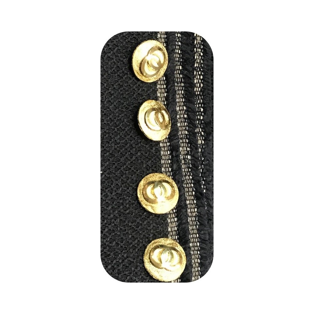 Sublimez vos créations avec ce galon style Chanel noir et blanc agrémenté d'une chaîne dorée ! Idéal pour la couture, la personnalisation de vêtements et accessoires, il