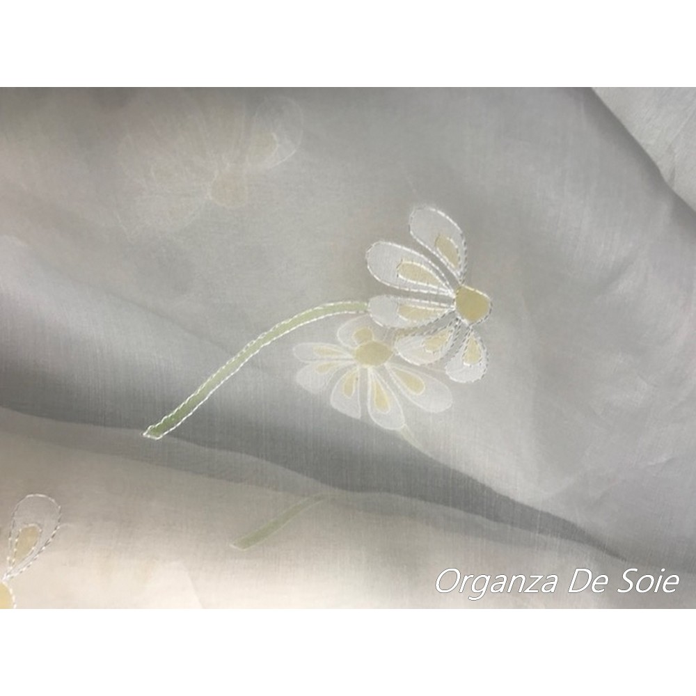 Tissu organza de soie brodé en fine fleurs au mètre en couleur ivoire , soie de bonne qualité de fabrication française,souple, soyeuse, fluide, pour loisirs créatifs, customisations.