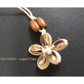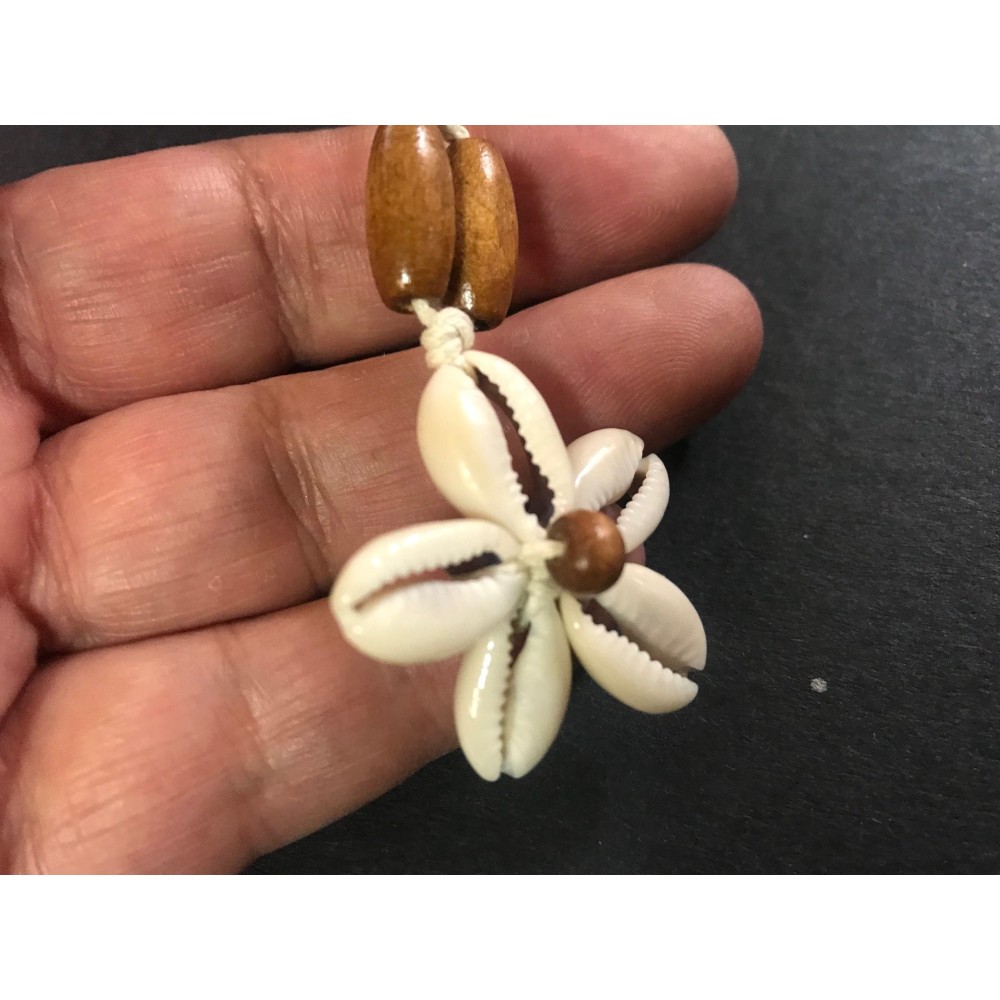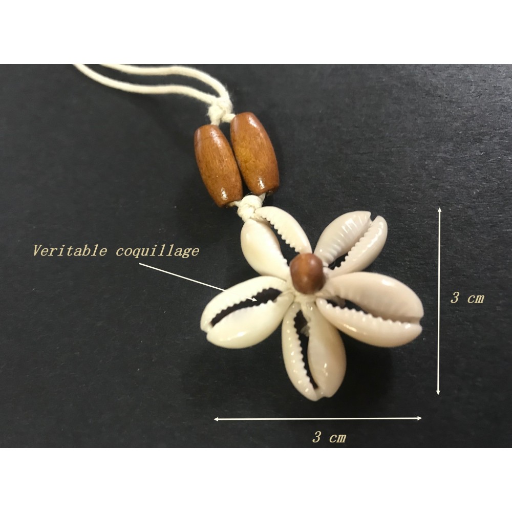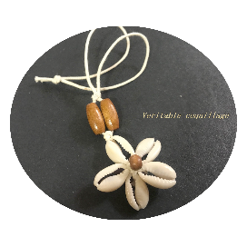 Fabriqué à partir de perles en bois soigneusement enfilées et orné d'un véritable coquillage, ce pendentif offre une combinaison harmonieuse de matériaux naturels. Le contraste entre le bois chaleureux et la texture délicate du coquillage crée un effet visuel captivant.