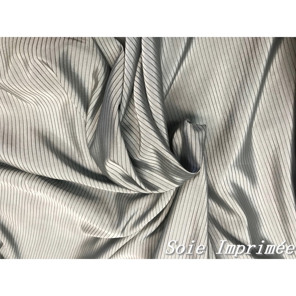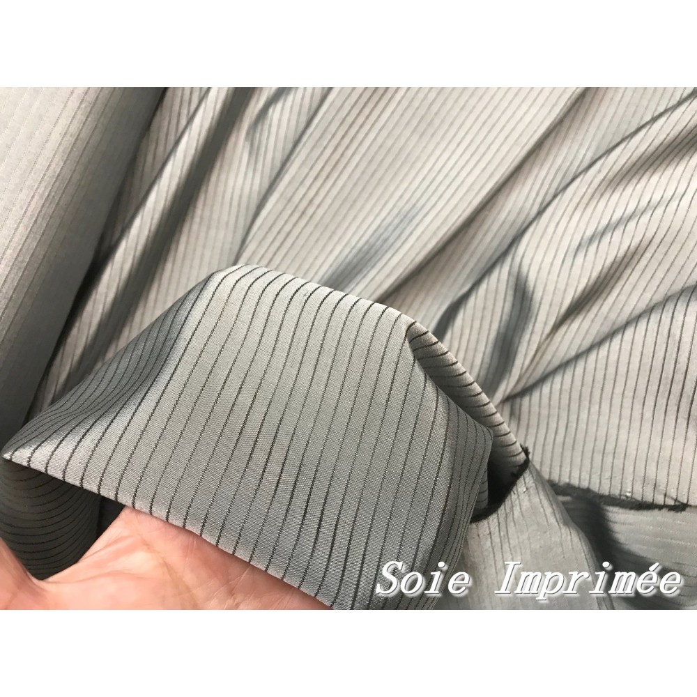 soie imprimée grise à fine rayure noir au mètre
