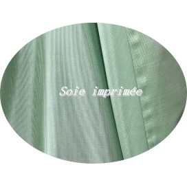 soie imprimée vert d'eau à très fine rayures blanches au mètre