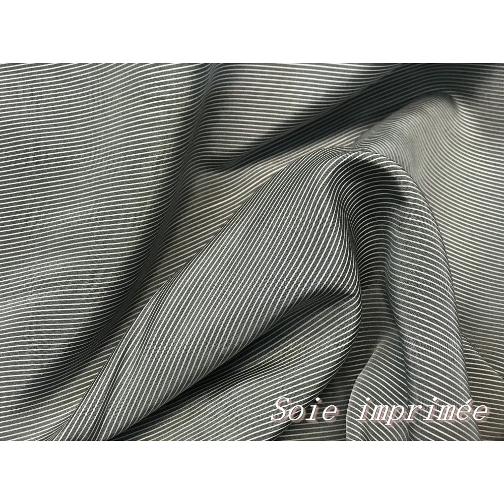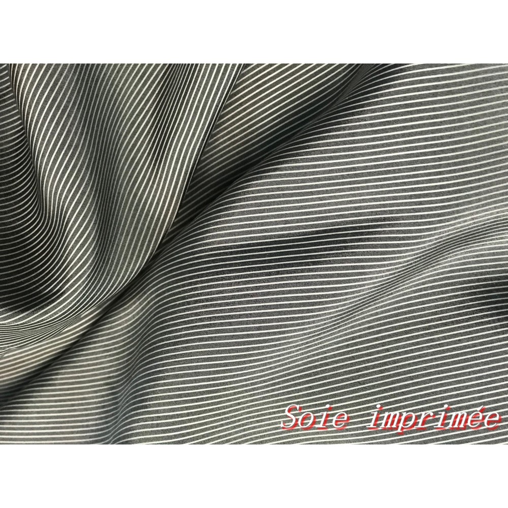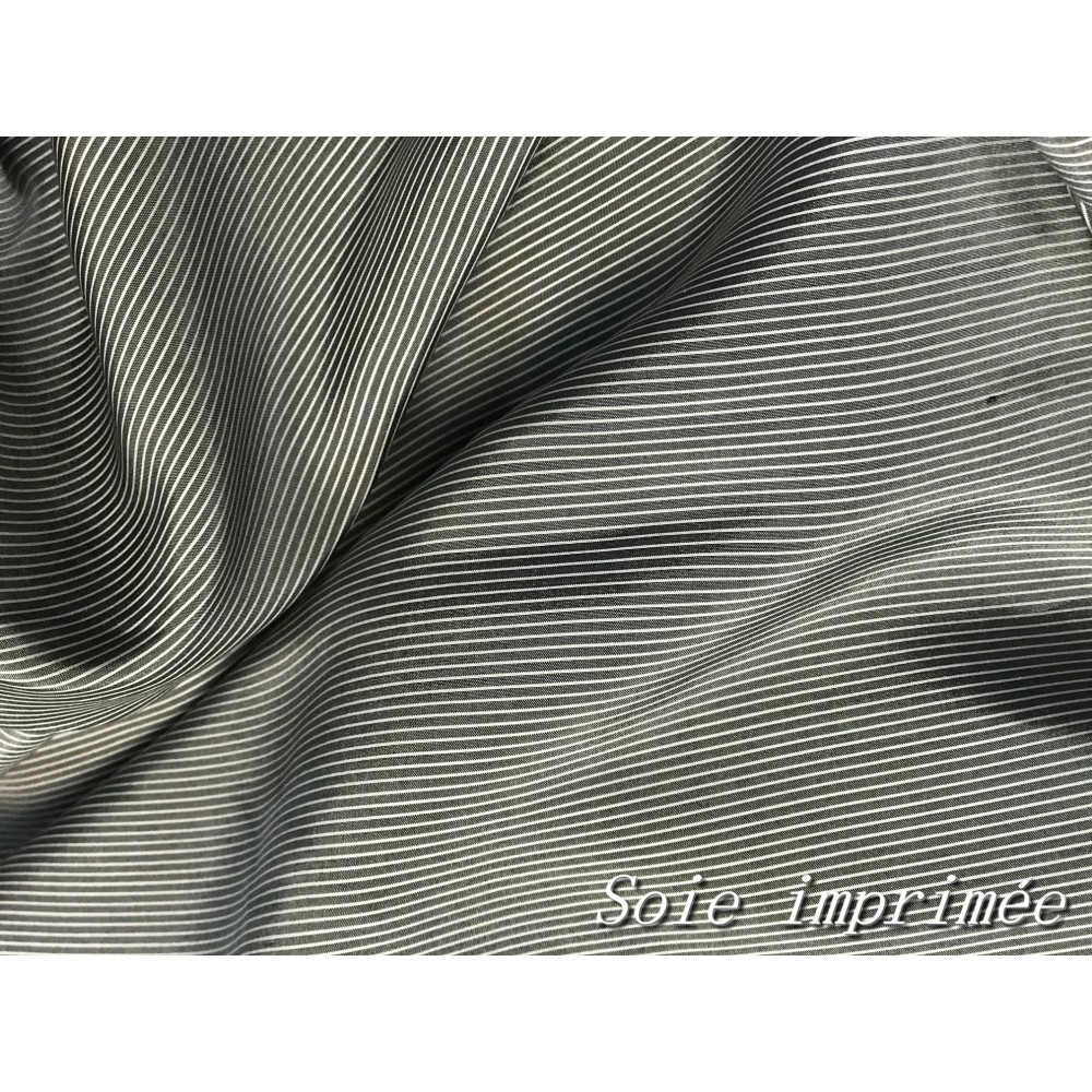 Découvrez notre mousseline de soie imprimée, dans une teinte grise subtile agrémentée de fines rayures blanches. Cette combinaison classique apporte une touche de raffinement intemporel à vos créations.