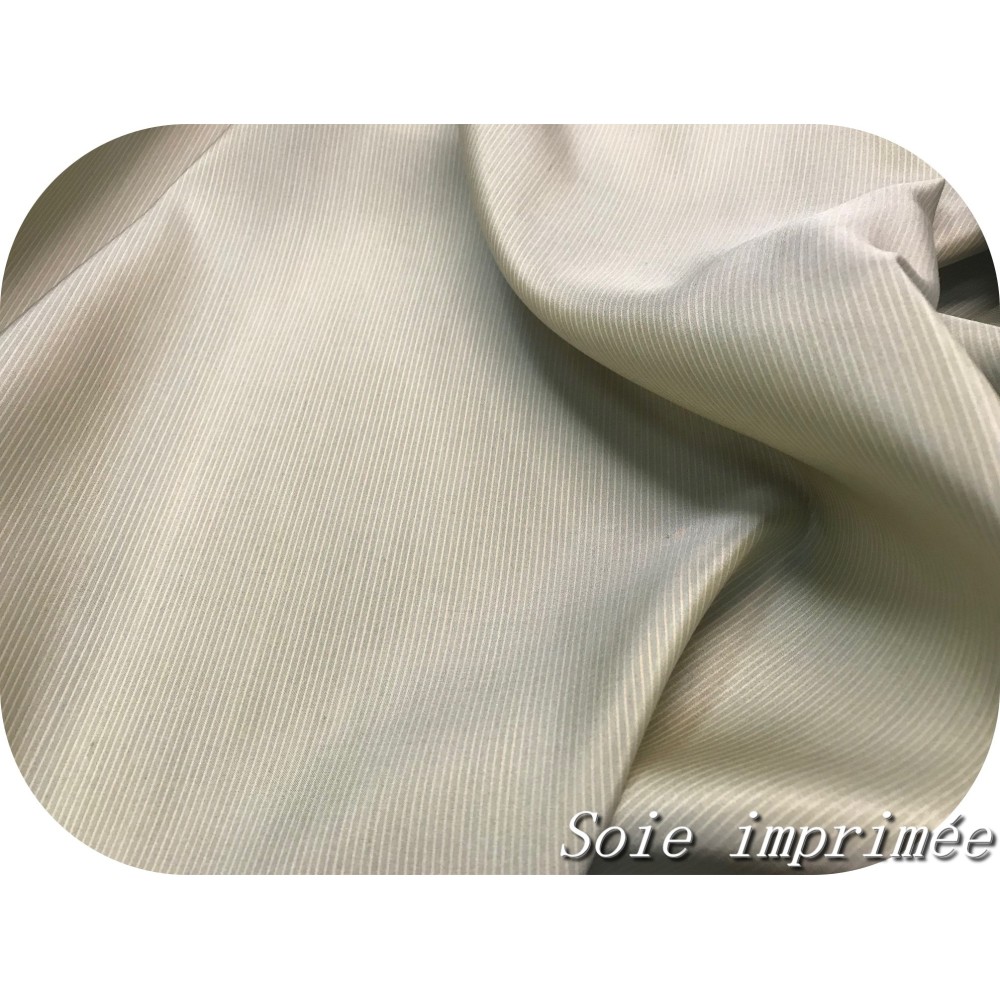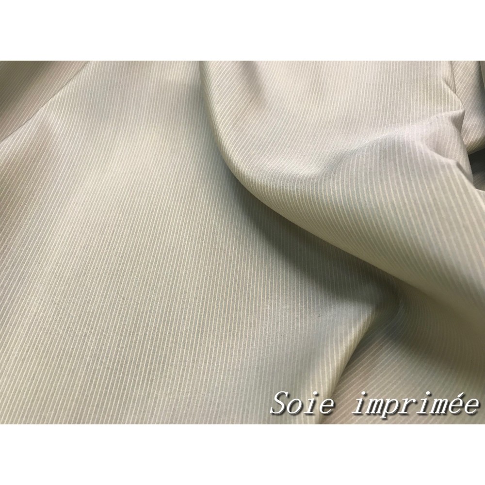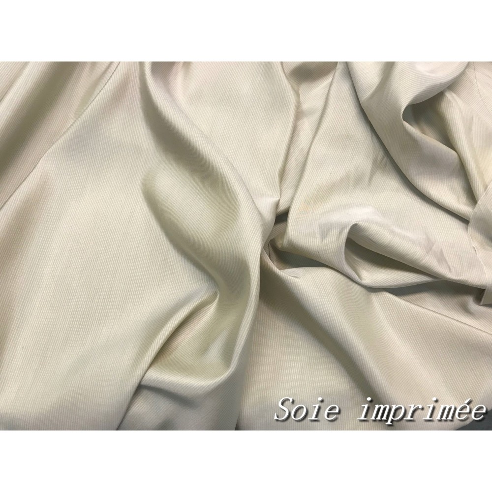 Découvrez notre magnifique soie imprimée, présentant un motif délicat d'oie beige avec de très fines rayures jaunes. Cette soie exceptionnelle est vendue au mètre, avec une largeur généreuse de 1 mètre 40, ce qui en fait un choix parfait pour la réalisation de robes, foulards, kimonos, écharpes, jupes longues et chemisiers.