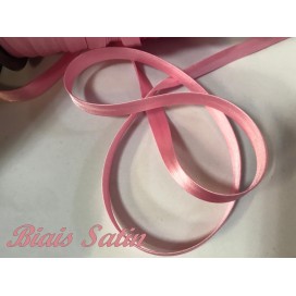 "Biais replié au mètre en satin rose, idéal pour vos projets de couture.