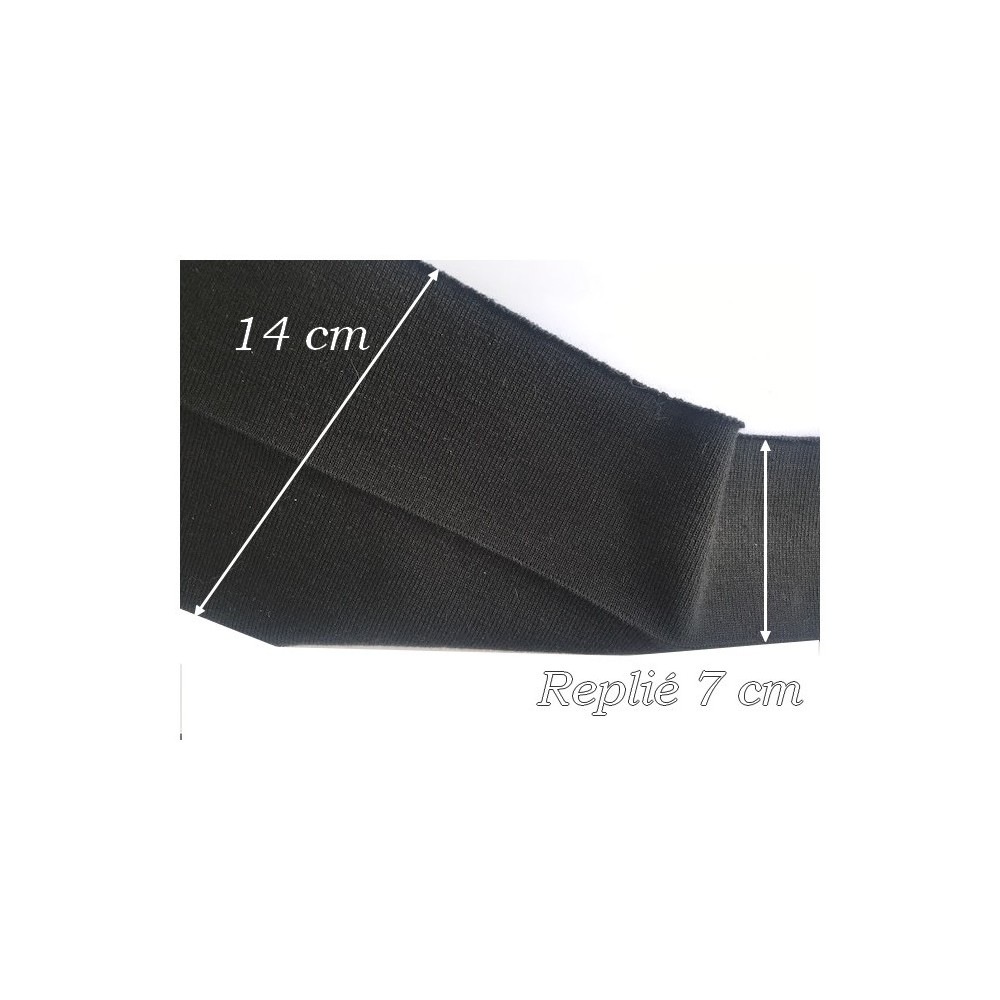 "Bande de tissu en jersey noir pour customisation, adaptée aux poignets, manches, bas de blousons, ainsi qu'aux bordures et terminaisons de vêtements.