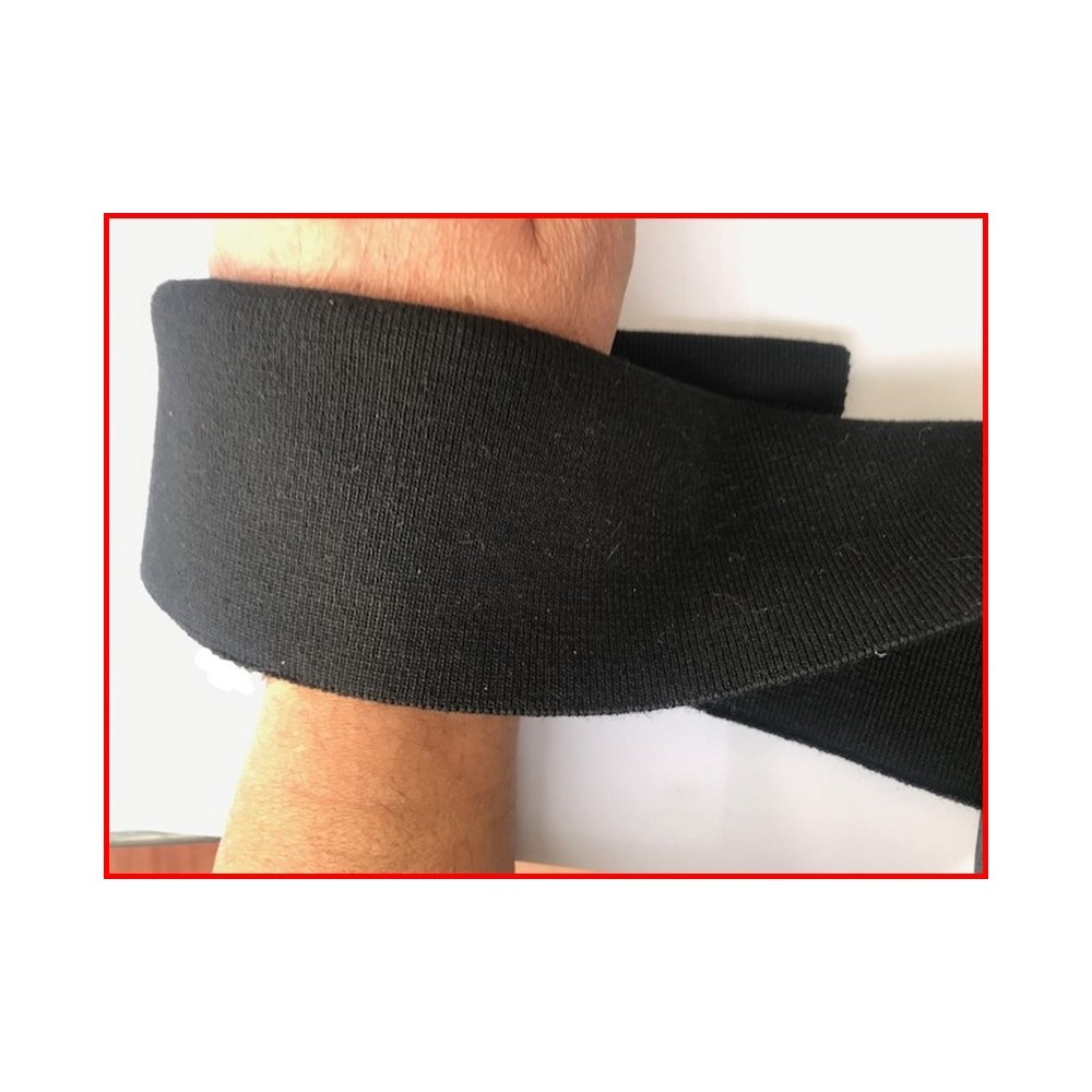 Bande de tissu en jersey noir lycra pour customisation, de poignée, de manche, bas de blousons, bordure et terminaison de vetements.