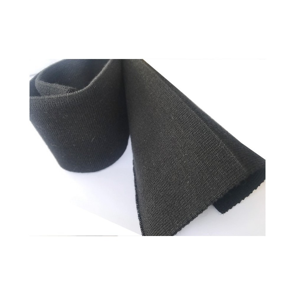 Tissu en bande élastique en jersey de couleur noir pour poignée, manchette, cols, finitions.
