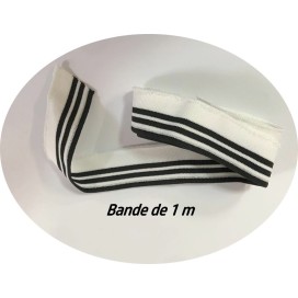 Bande de tissu en jersey blanc avec impression noir pour customisation, de poignée, de manche, bas de blousons, bordure et terminaison de vetements.