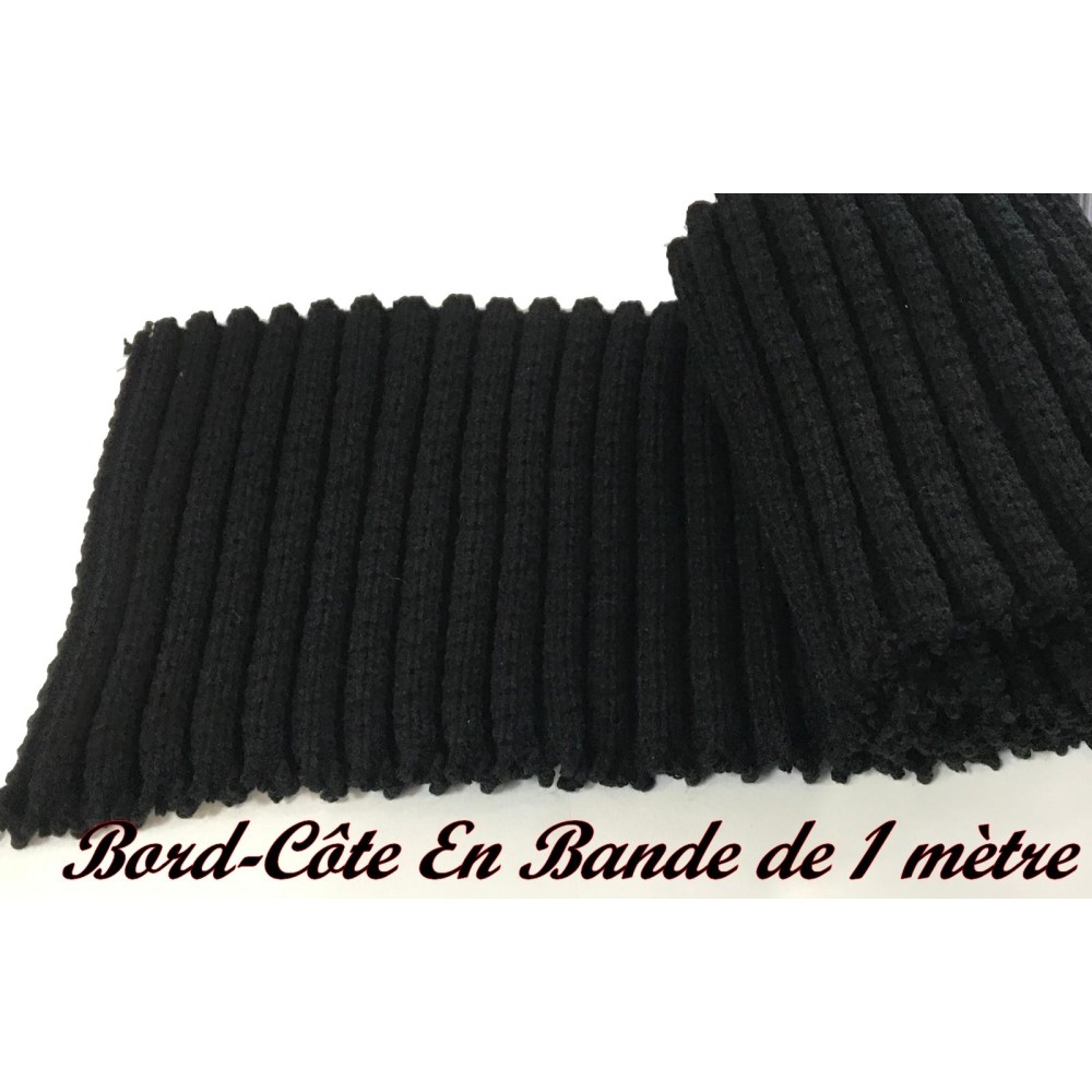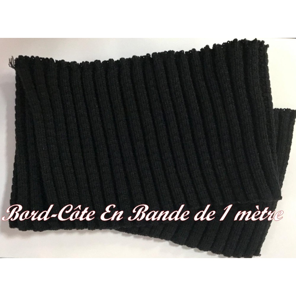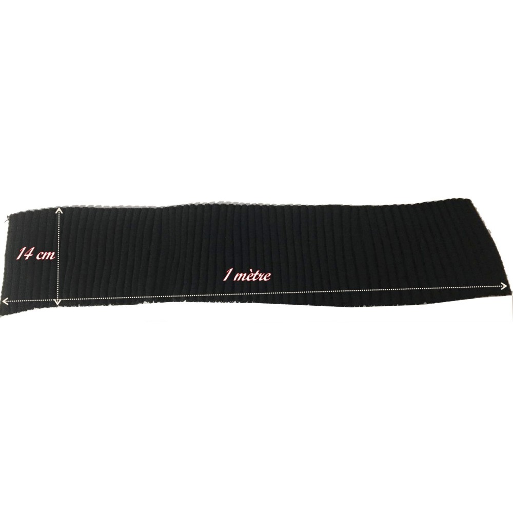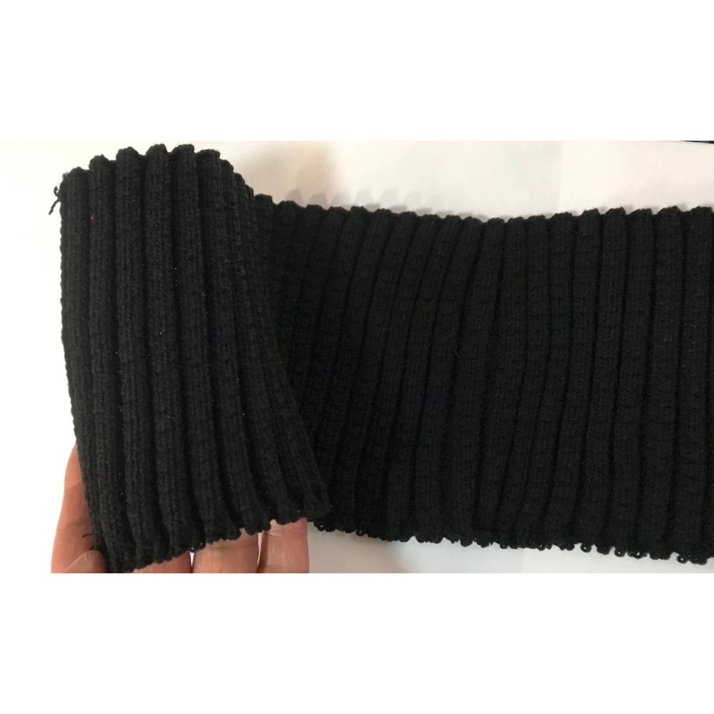 "Bande de tissu en jersey noir pour customisation, adaptée aux poignets, manches, bas de blousons, ainsi qu'aux bordures et terminaisons de vêtements.