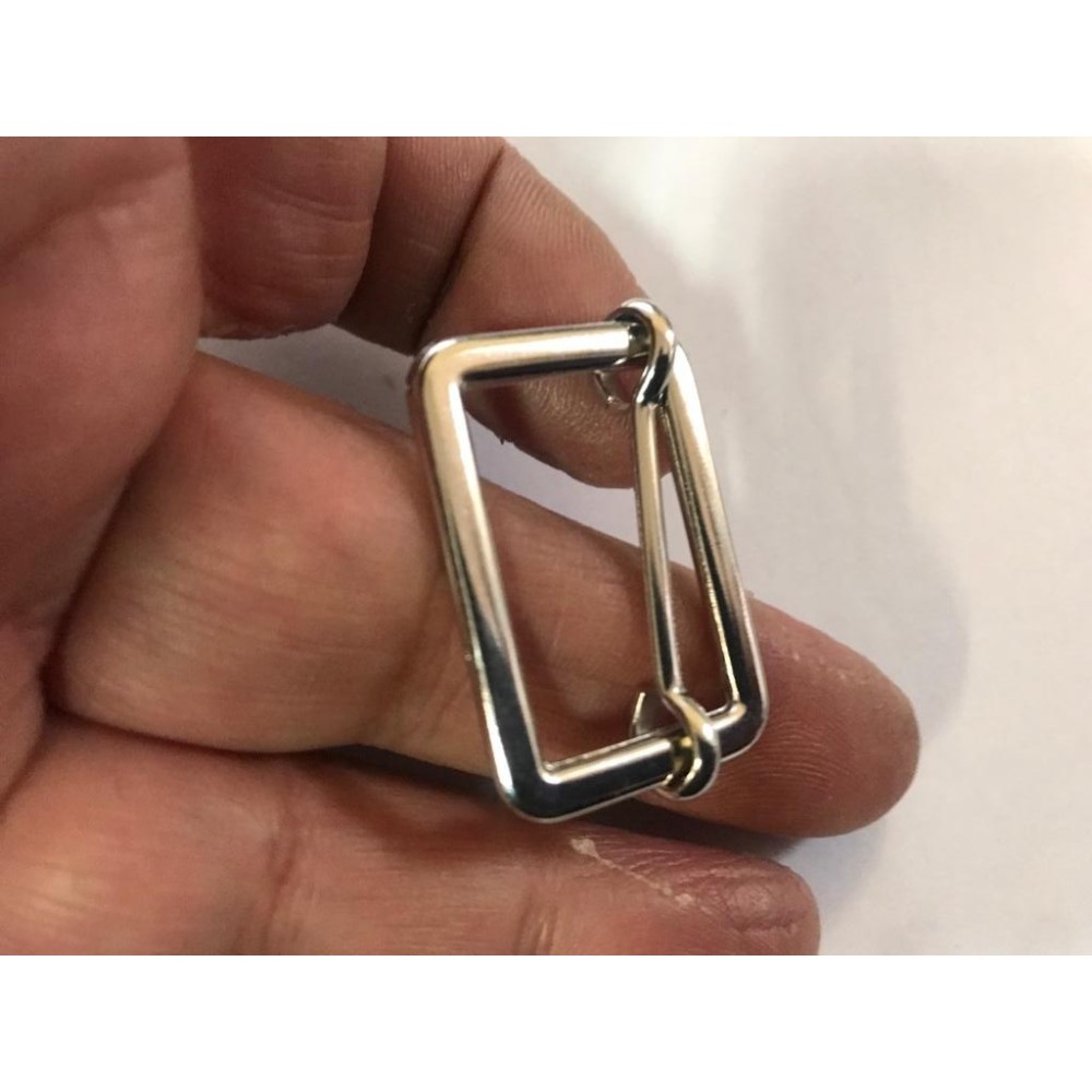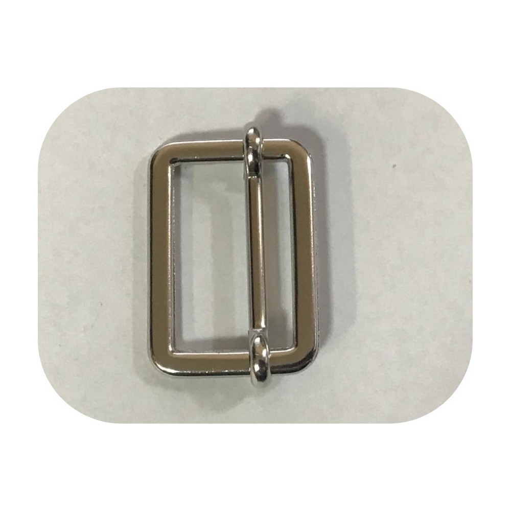 Boucle coulissante en métal nickel en intérieur 2,5 cm et longueur 3 cm, couleur argent mat, de fabrication italienne.