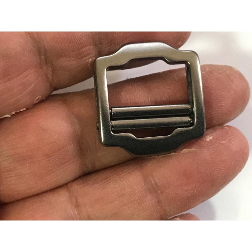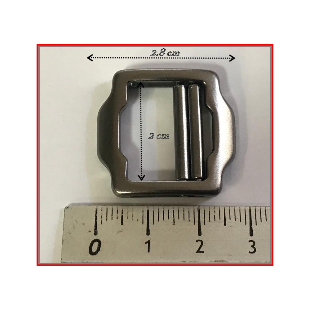 Boucle coulissante en métal nickel en intérieur 2,5 cm et longueur 3 cm, couleur argent mat, de fabrication italienne.