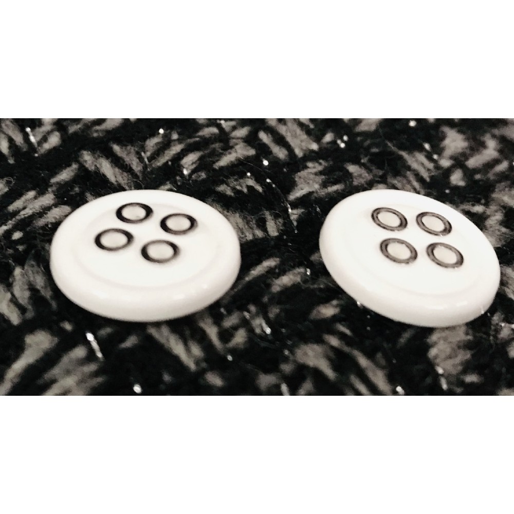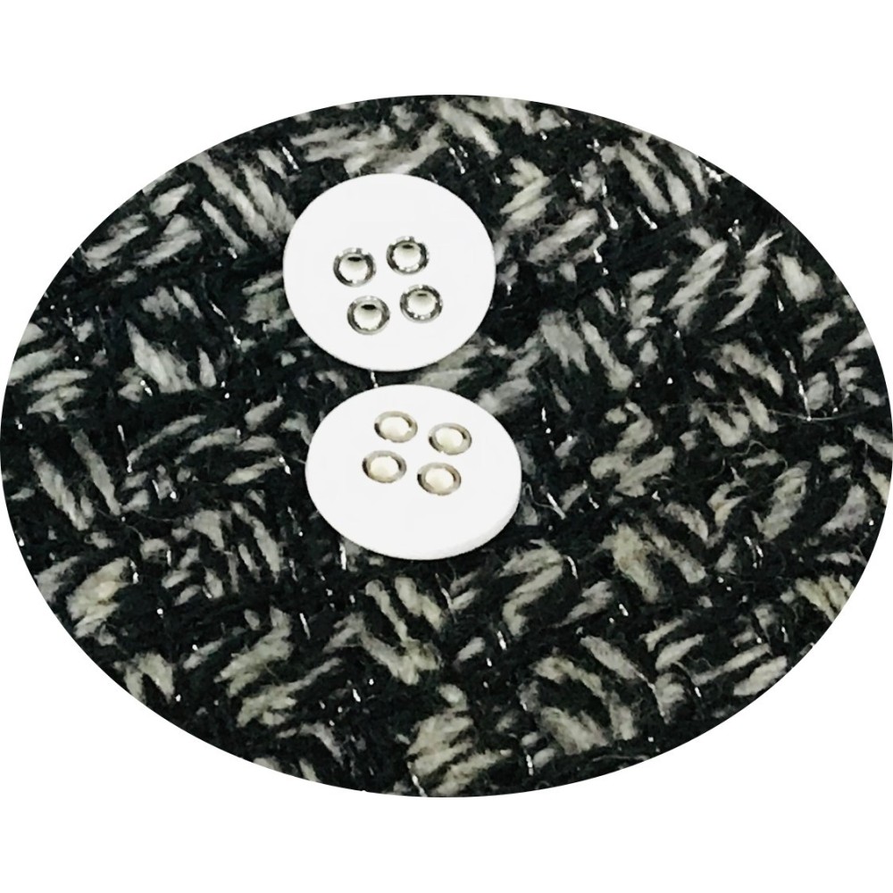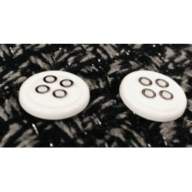 Bouton blanc à coudre en taille ,18 mm, 20 mm et 25 mm blanc ou noir en 2 trous avec un petit cercle au milieu brillant et un fond mat qui lui donne un aspect original.