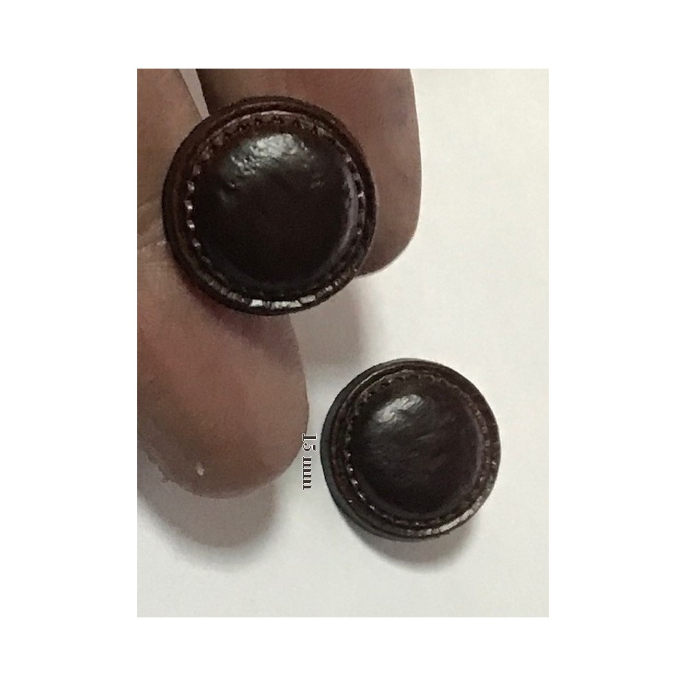 Bouton façon Cuir à queue mat , à Coudre en marron , avec contour point sellier