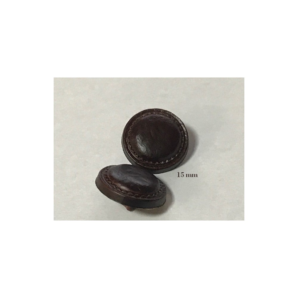 Bouton façon Cuir mat à queue, à Coudre en marron choco, avec contour point sellier