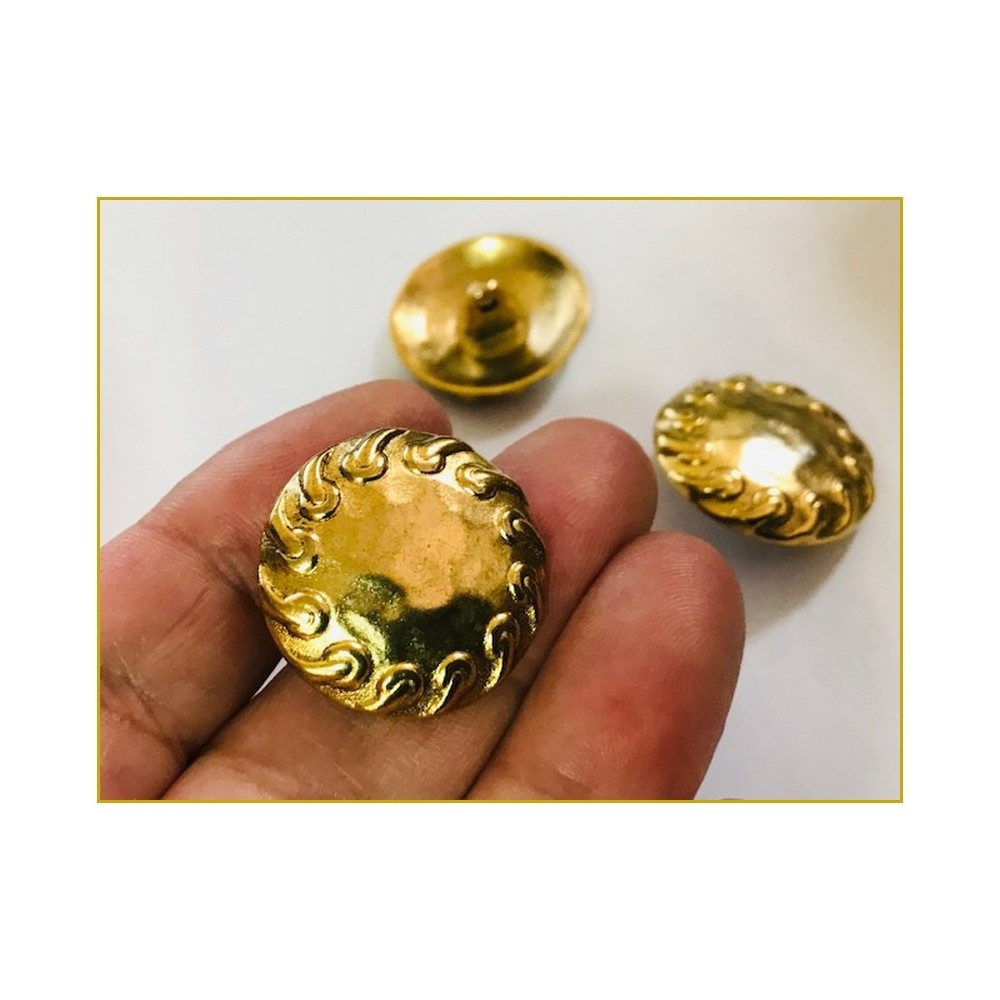 Bouton en demi- boule, doré mat de fabrication italienne fantaisie à queue qui a un bel aspect or mat , pour vetements, confection, pantalon, vestes, tailleurs style " chanel ", loisirs créatifs et décorations costumes d'époque, et théatre