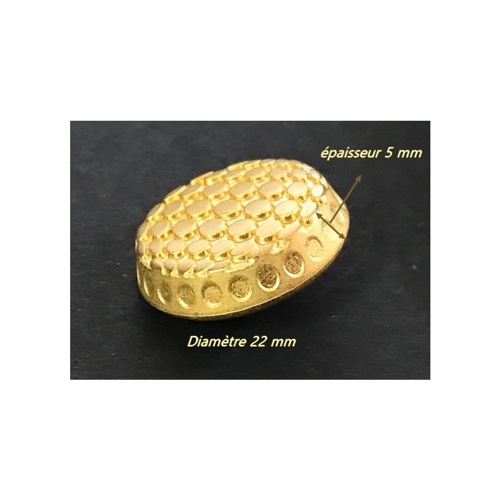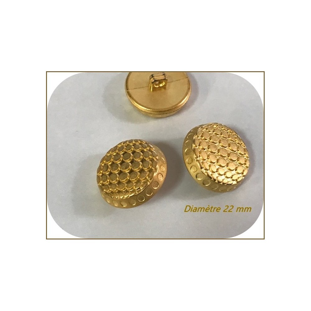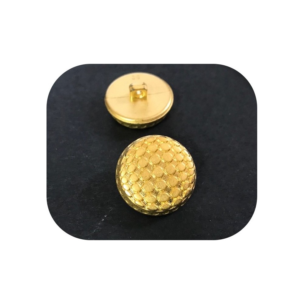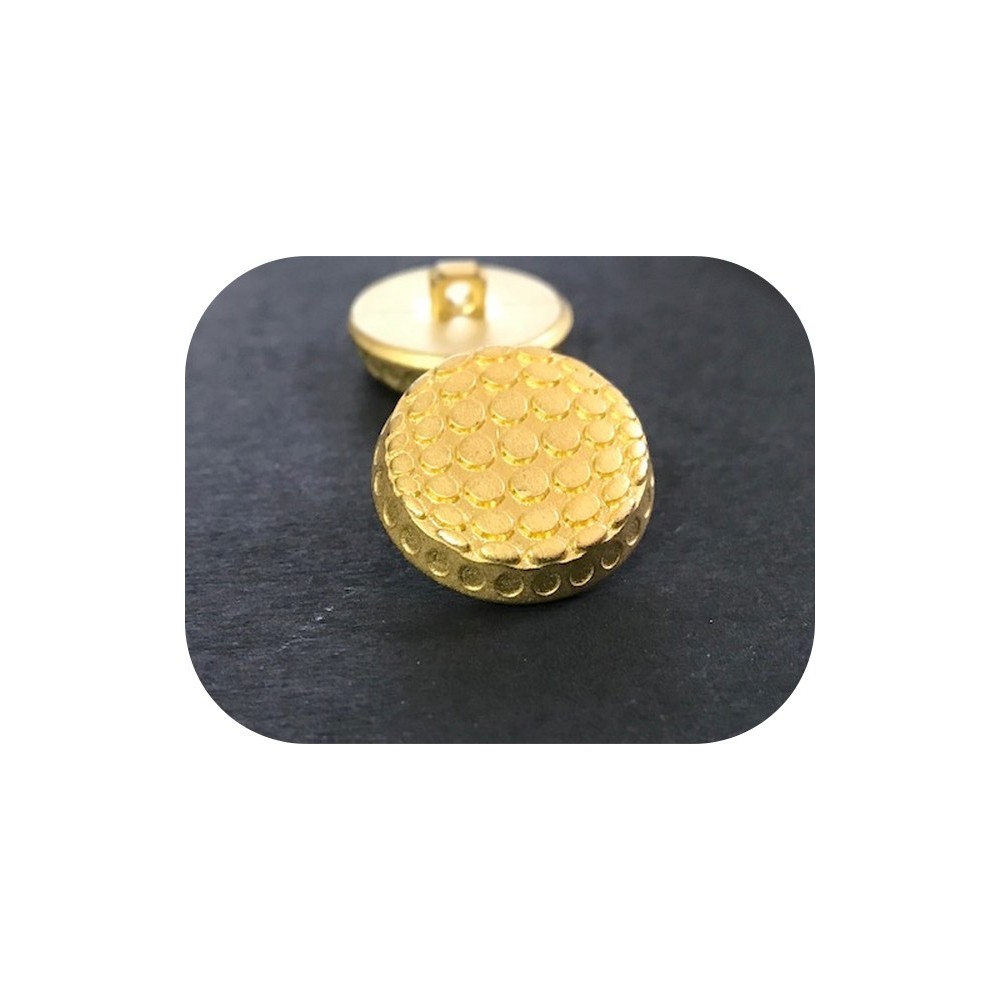 Bouton en demi- boule, doré mat de fabrication italienne fantaisie à queue qui a un bel aspect or mat , pour vetements, confection, pantalon, vestes, tailleurs style " chanel ", loisirs créatifs et décorations costumes d'époque, et théatre