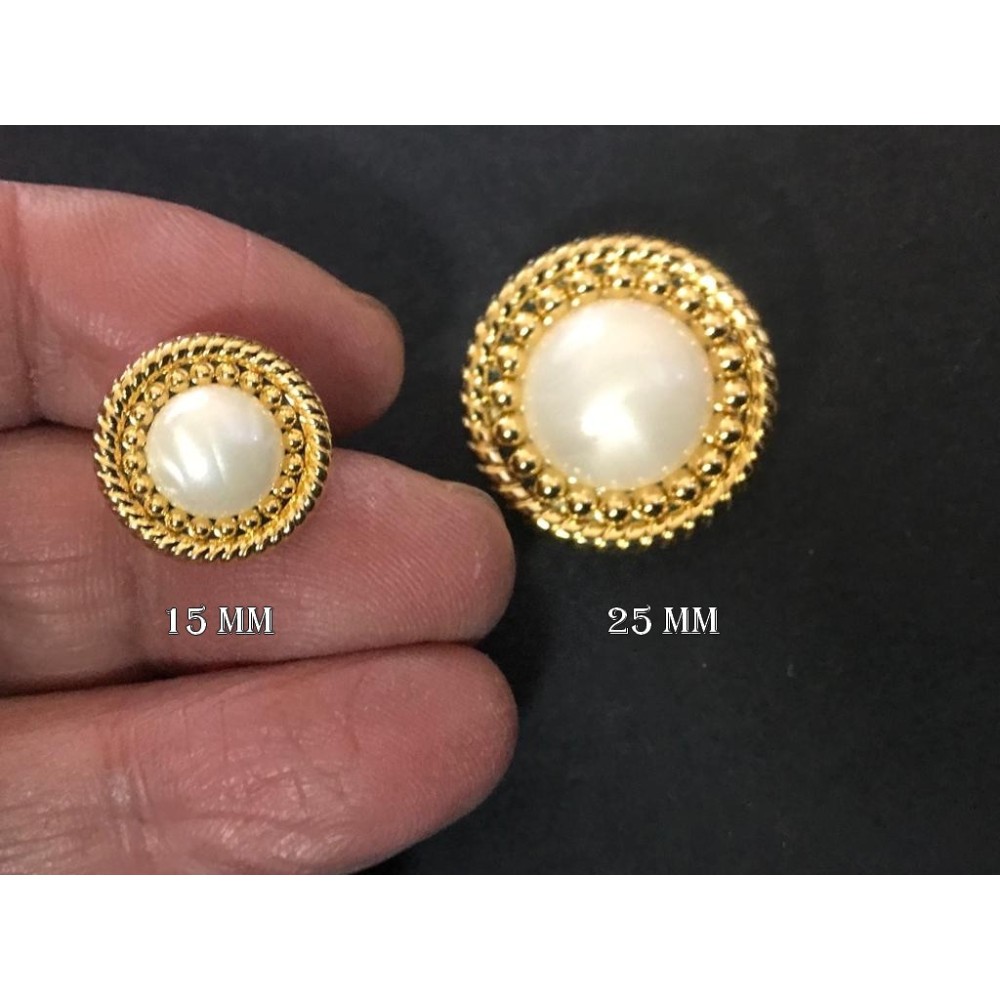 "Découvrez nos boutons dorés au charme unique, ornés d'un fond nacré et d'un cerclage élégant inspiré du style chanel. Ajoutez une touche de sophistication à vos créations avec ces boutons de qualité supérieure."
