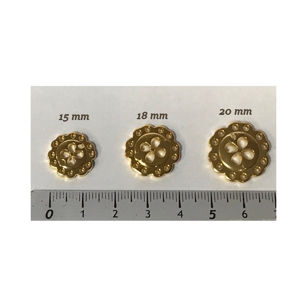 Bouton en taille 15 mm en métal 4 trous à coudre , original pour robe, chemisier, pantalon, veste couture.