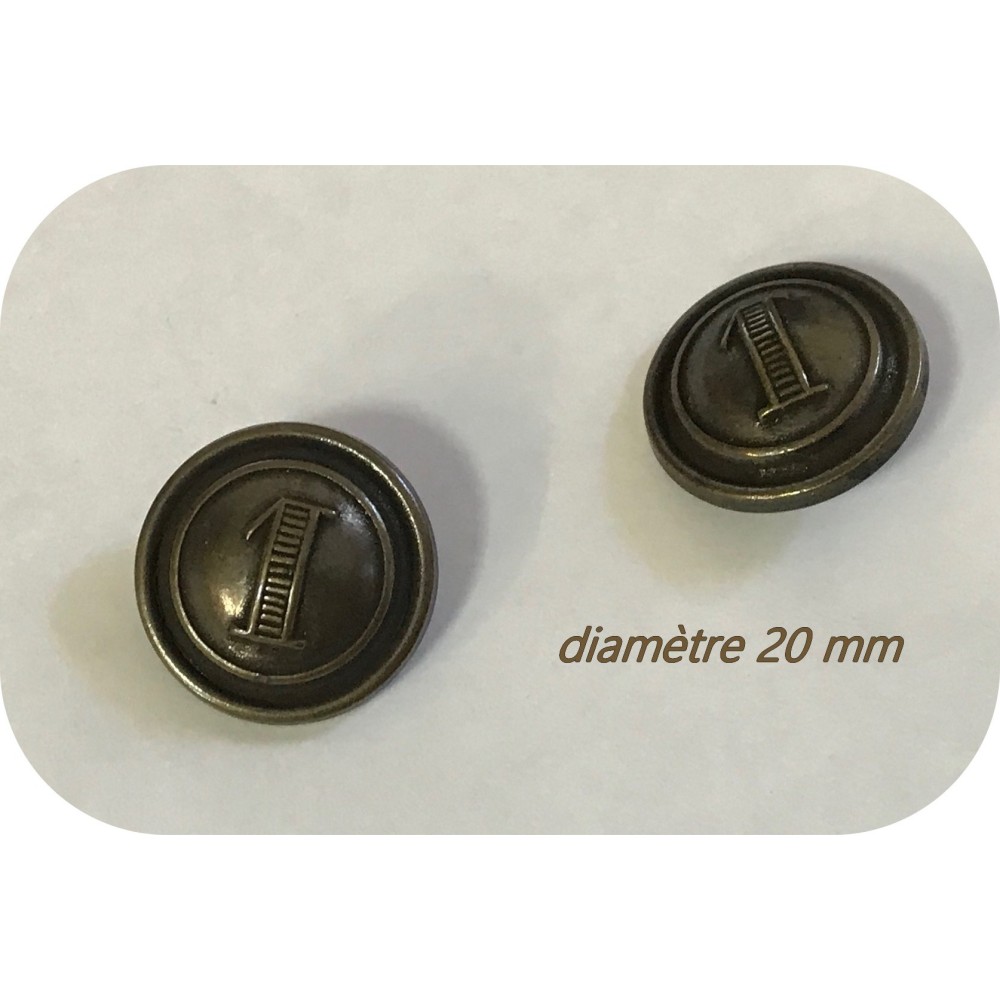 Bouton bronze militaire , orné d'une chiffre 1, original pour robe, chemisier, pantalon, veste couture.