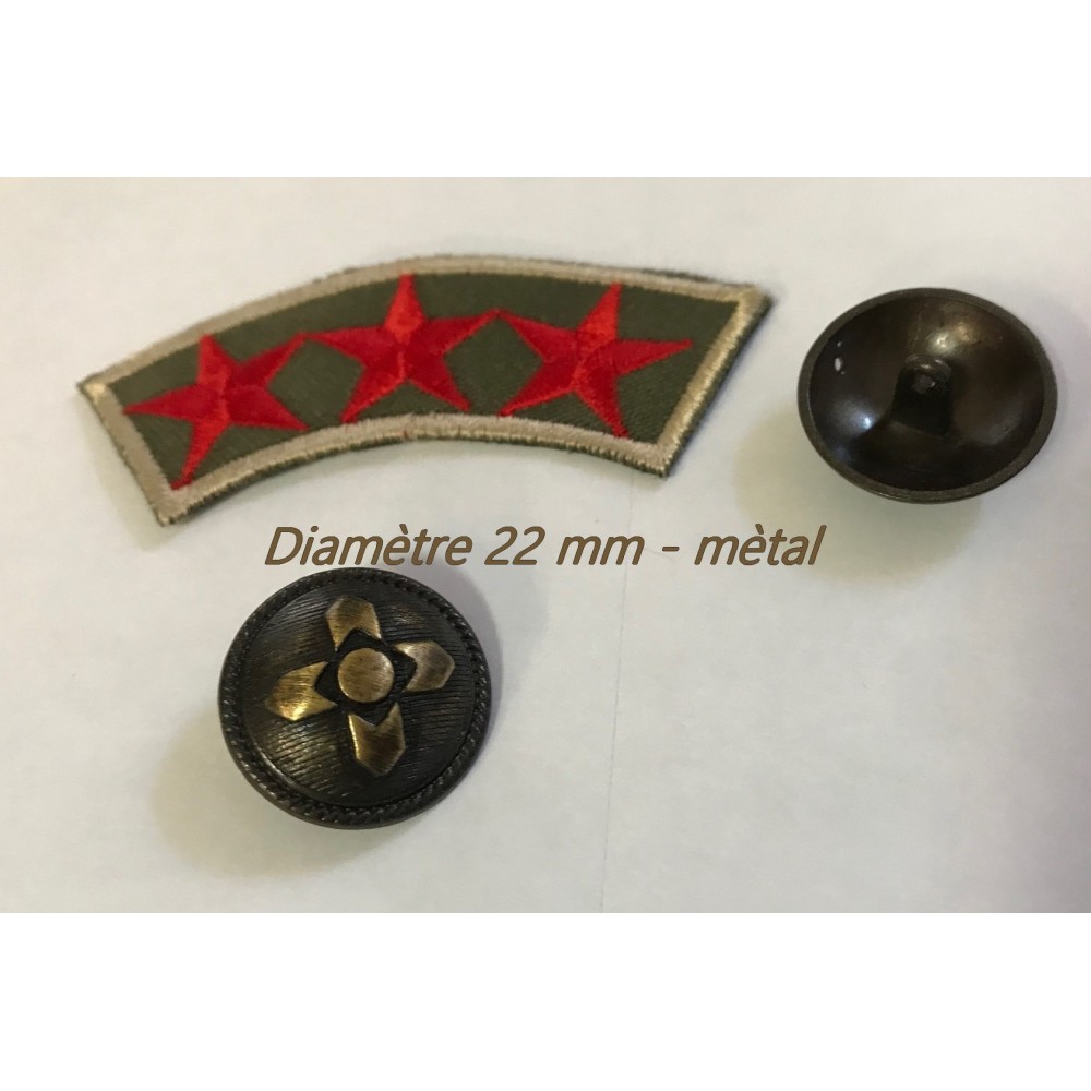 Bouton bronze mètal militaire ,fantaisie, original pour robe, chemisier, pantalon, veste couture.