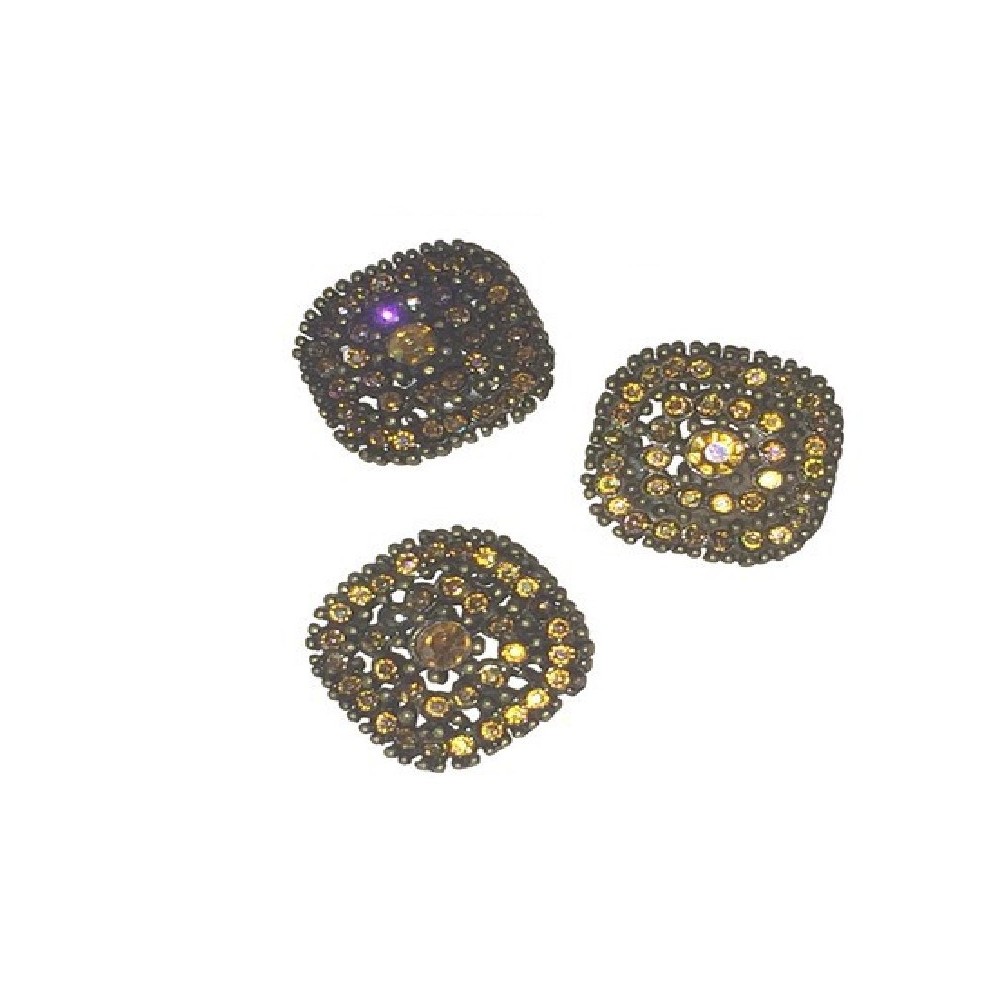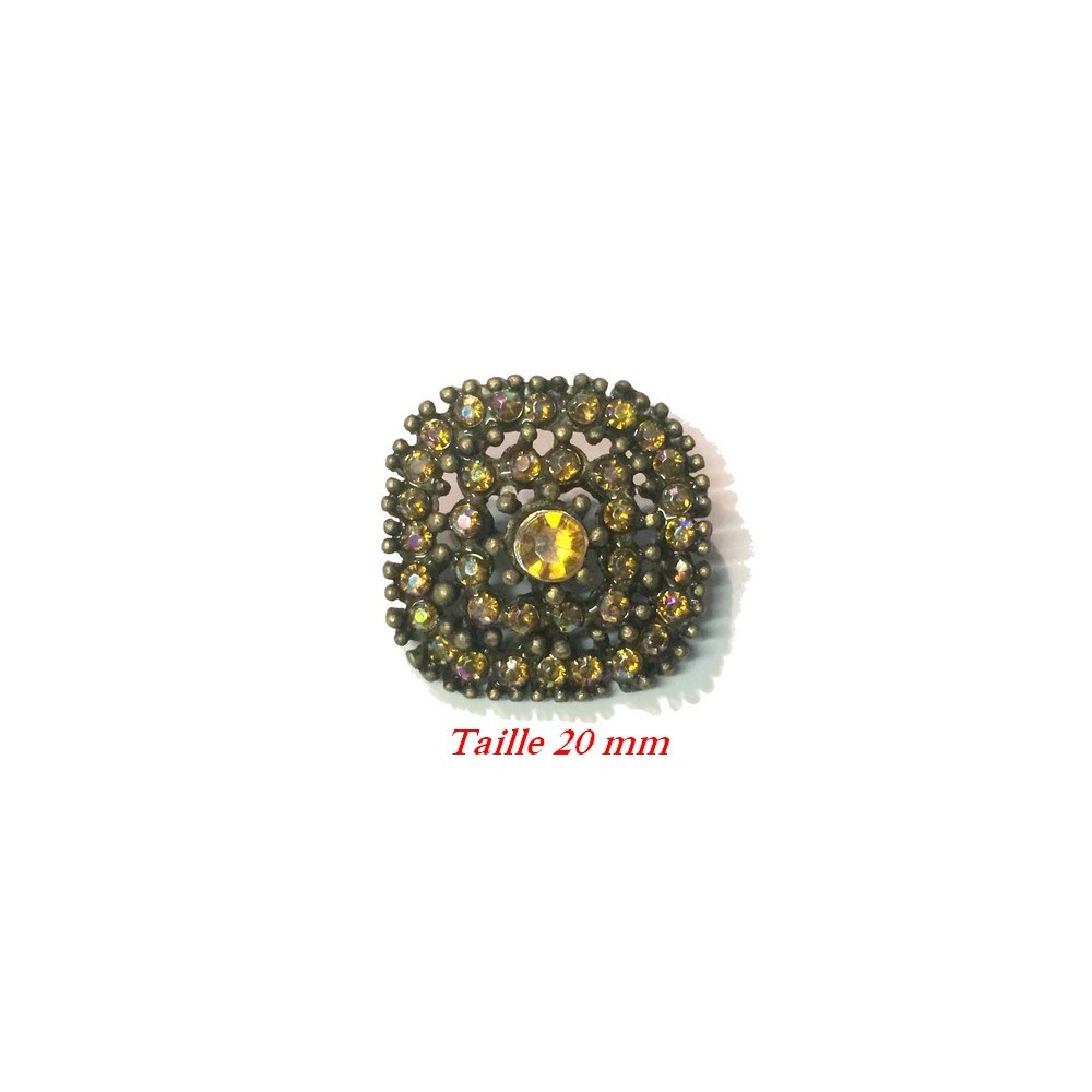 Fourniture Bouton Métal Strass Jaune Irisé.