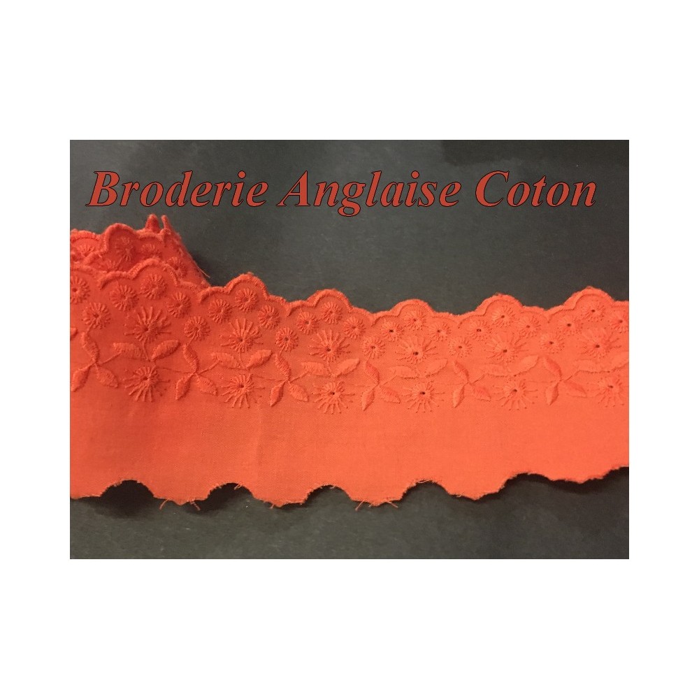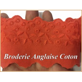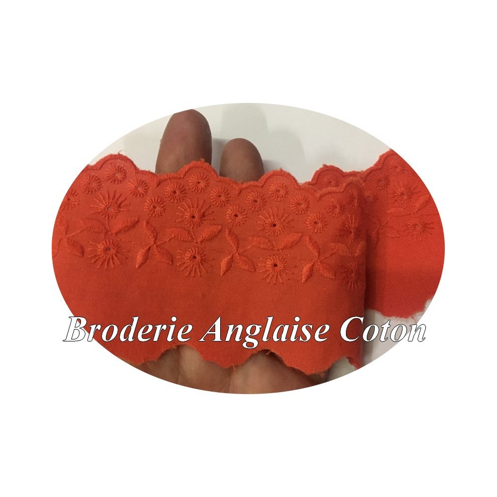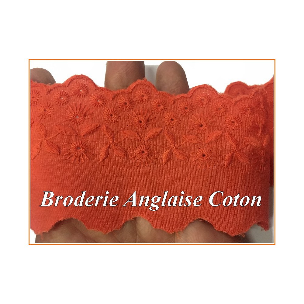 Broderie anglaise en 6 cm orange motif brodé en fleurs
