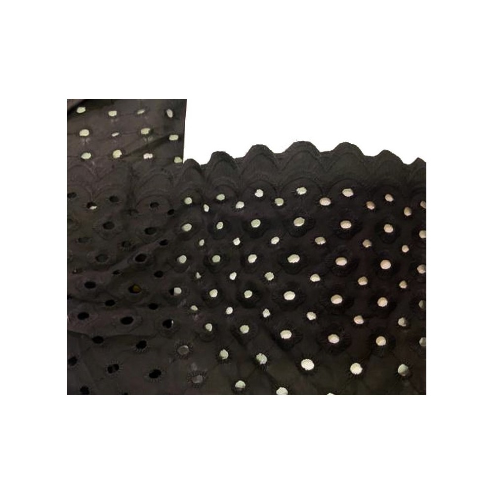 Tissu en Broderie anglaise noir en grande largeur  en coton avec des motifs en rondelle  brodées  sur toute la largeur et festonné sur les 2 extremitées