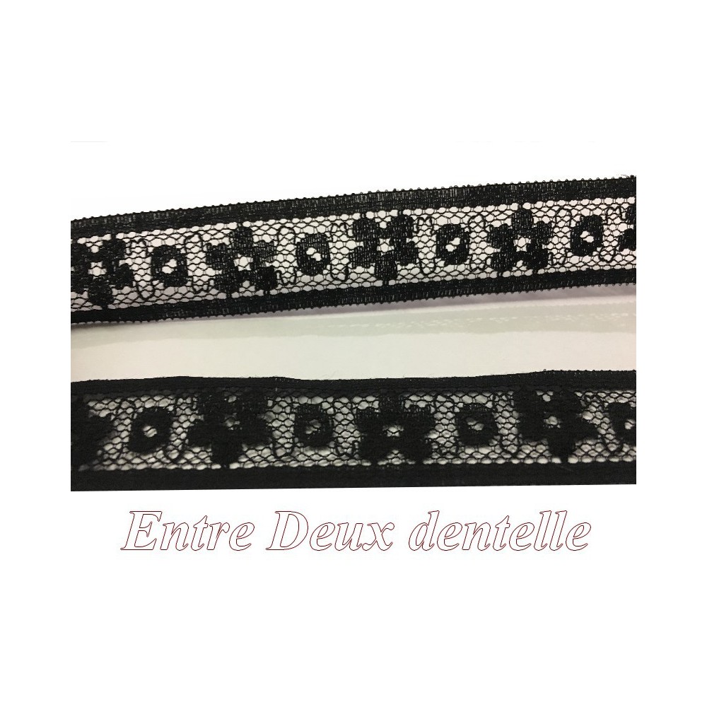 Dentelle au mètre pas cher fixe en 1,2 cm ,avec liseré noir.