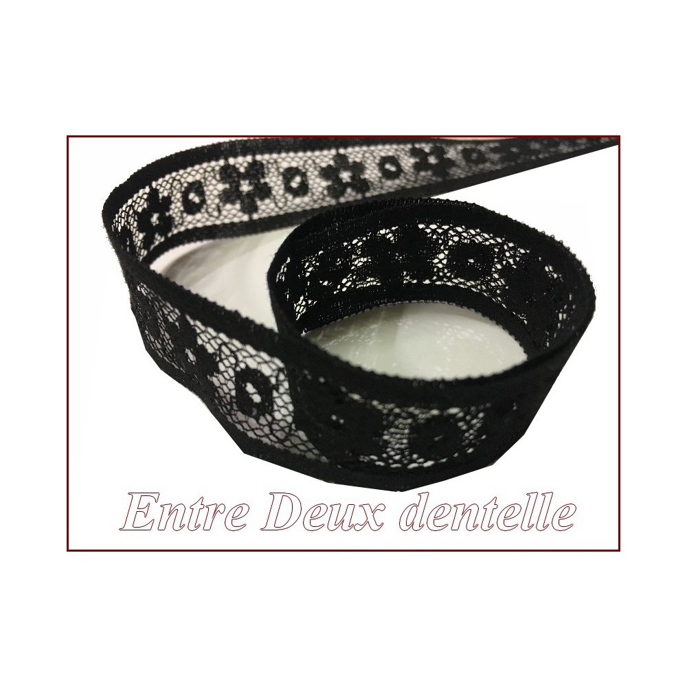 Ruban dentelle noir à découpé de dimension : 2.5 cm.