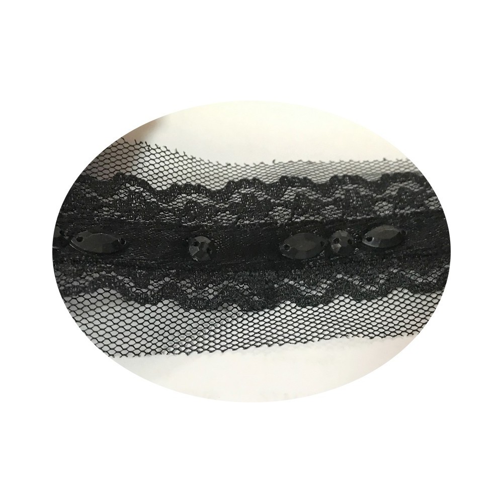 Ruban de velours strass en 15 mm de couleurs noir , pour lingerie vetements et loisirs créatifs.