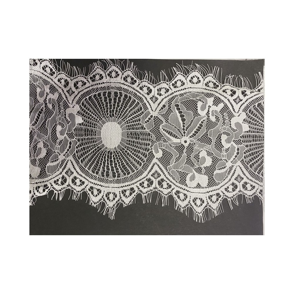 Dentelle de calais au mètre en blanc,à coudre, festonné des deux cotées, dentelle lycra au