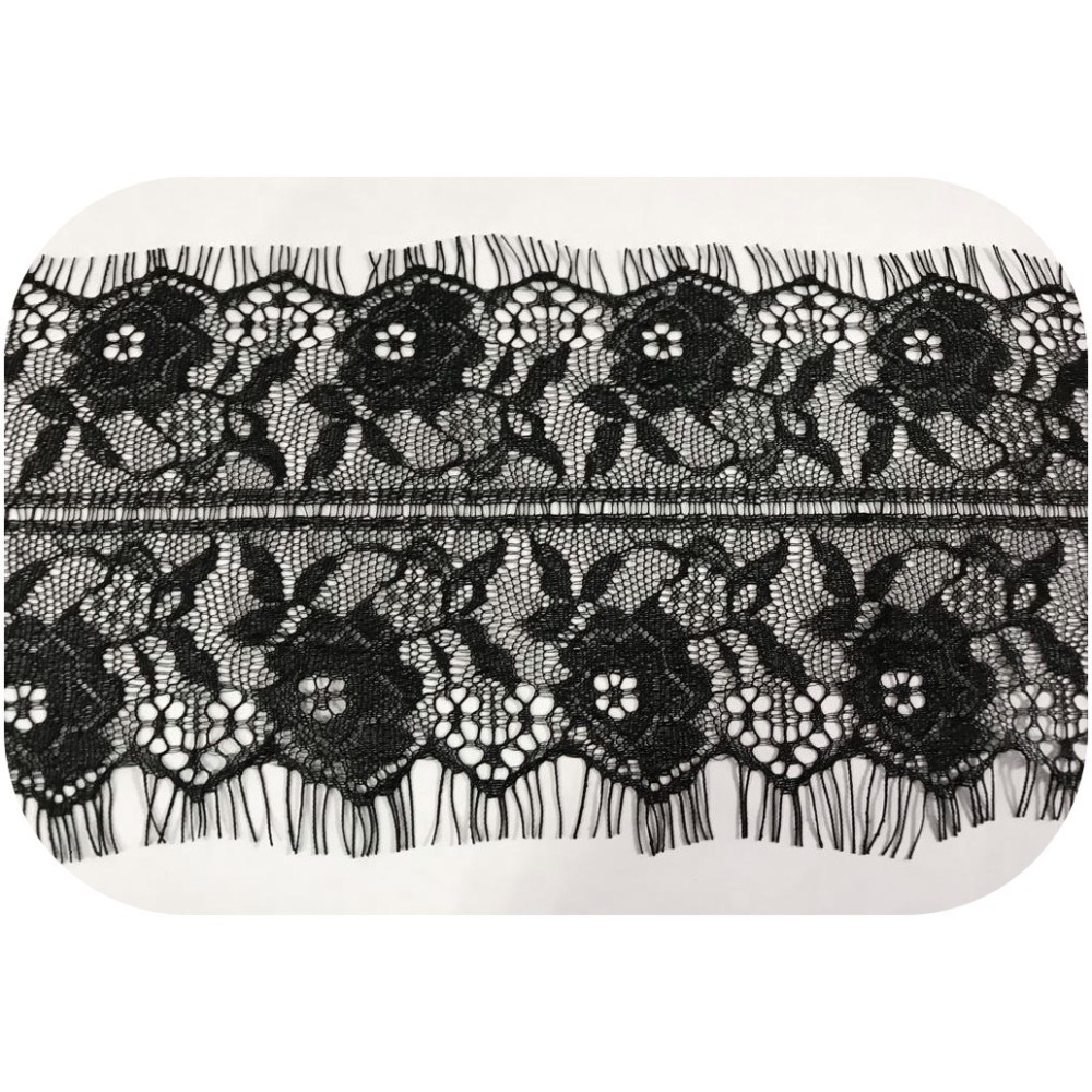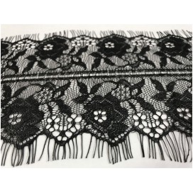 Dentelle chantilly au mètre fixe couture en 10 cm noir, pour loisirs créatifs et customisation décorations.
