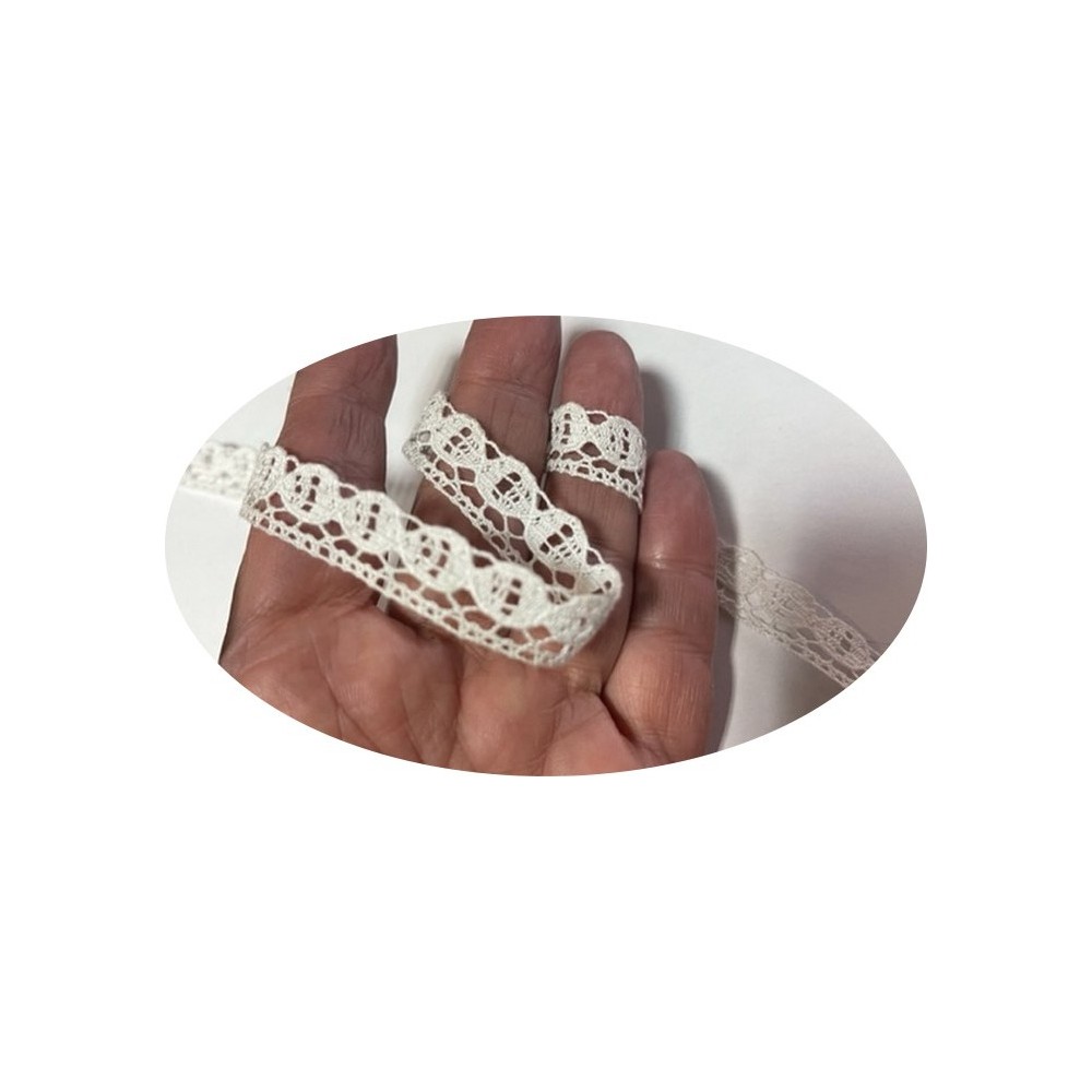 Dentelle macramé au mètre en 1.4 cm fin style picot et festonné d'un coté pour loisirs créatifs