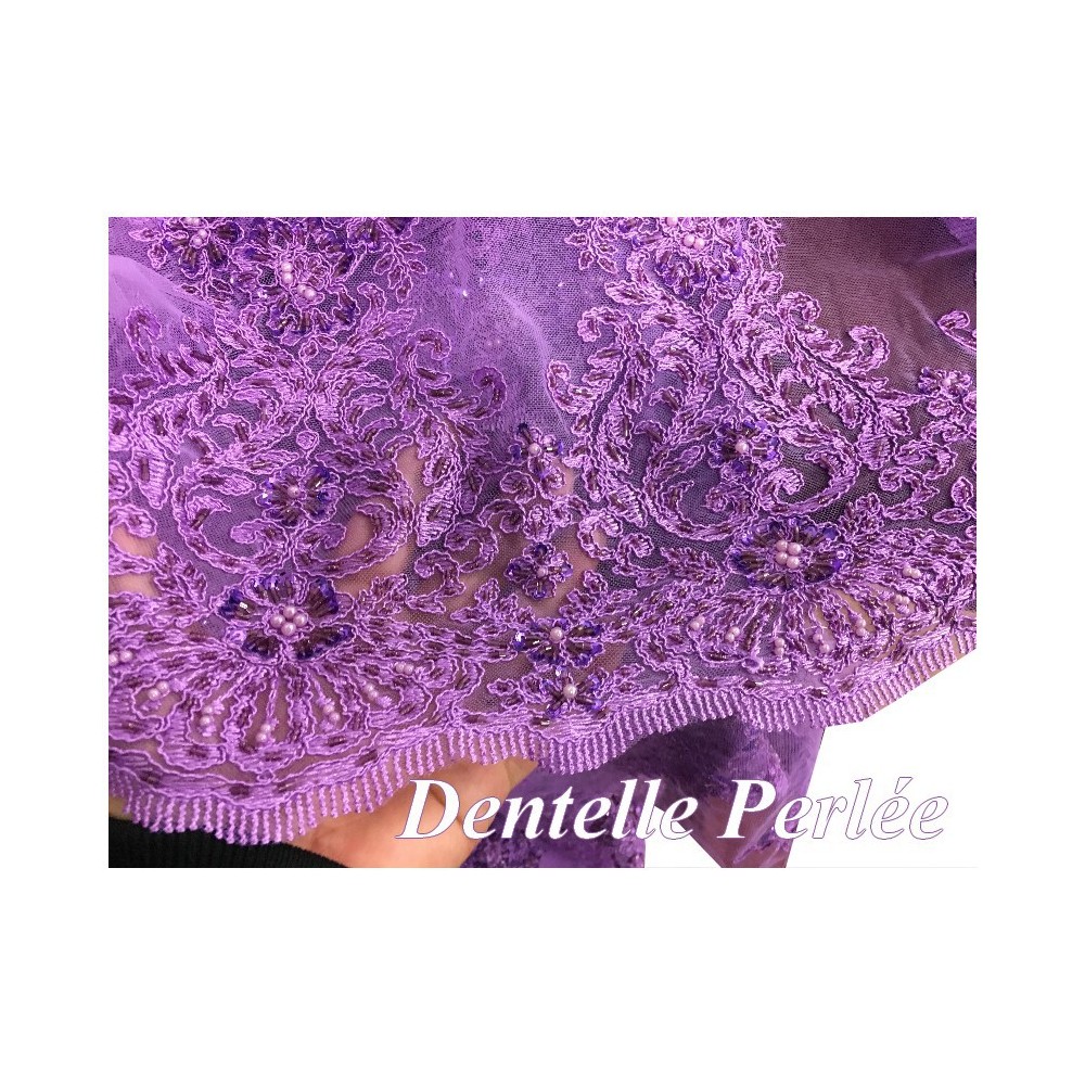 Dentelle perlé et Festonné des deux cotées et Orné de Motif Fleurs Brodé de Perles cousu Main de couleurs ton sur ton, et de haute qualité.