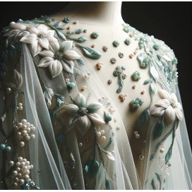 Explorez l'univers de la haute couture avec notre magnifique tissu en résille, une toile parfaite pour les créateurs de mode en quête d'originalité. Ce tissu haute couture de qualité supérieure brille de perles et de strass, ajoutant une touche de glamour à vos créations.