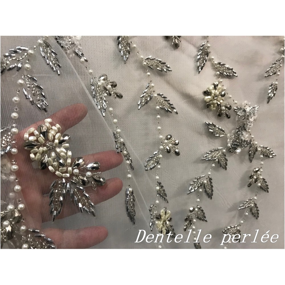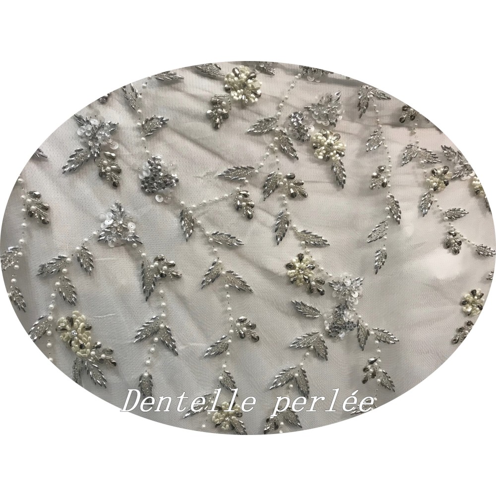 Largeur de la dentelle perlée : 1 m 45.