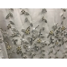 Tissu en Dentelle Perlé Blanc pour Mariage de Largeur 1 mètre 45 .