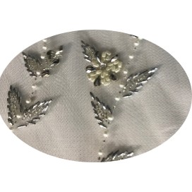 Dentelle perlé et Festonné des deux cotées et Orné de Motif Fleur, de motifs en forme de plume en tissu Brodé de Perles couleurs Blanche, et de haute qualité.