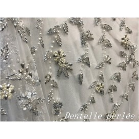Tissu en Dentelle Perlé pour confections de robes