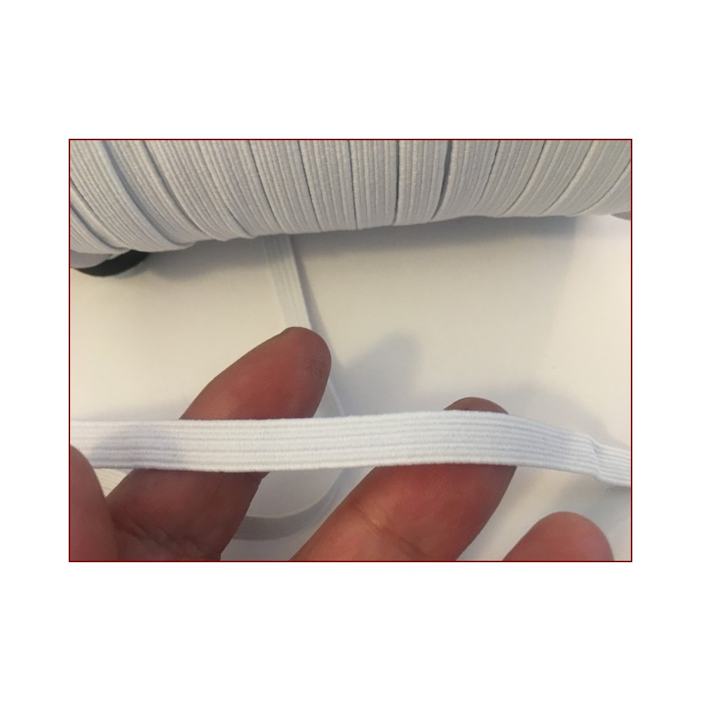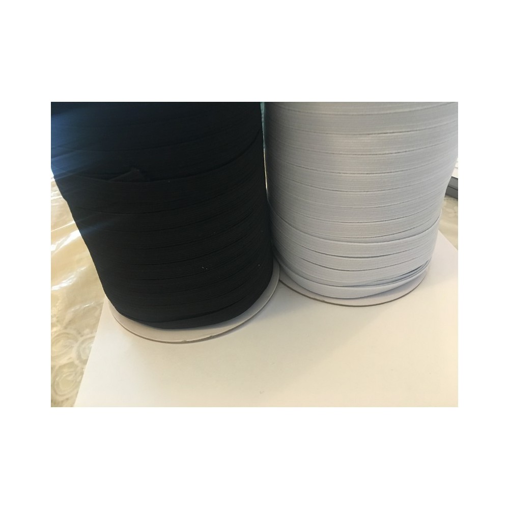 Elastique plat couture en 6 mm spéciale pour fabrication de masques de protection noir ou blanc au mètre au prix de gros. x 100 mètres.