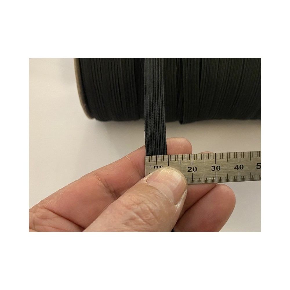 Elastique plat couture en 9 mm spéciale pour fabrication de masques de protection noir ou blanc au mètre au prix de gros. x 100 mètres.