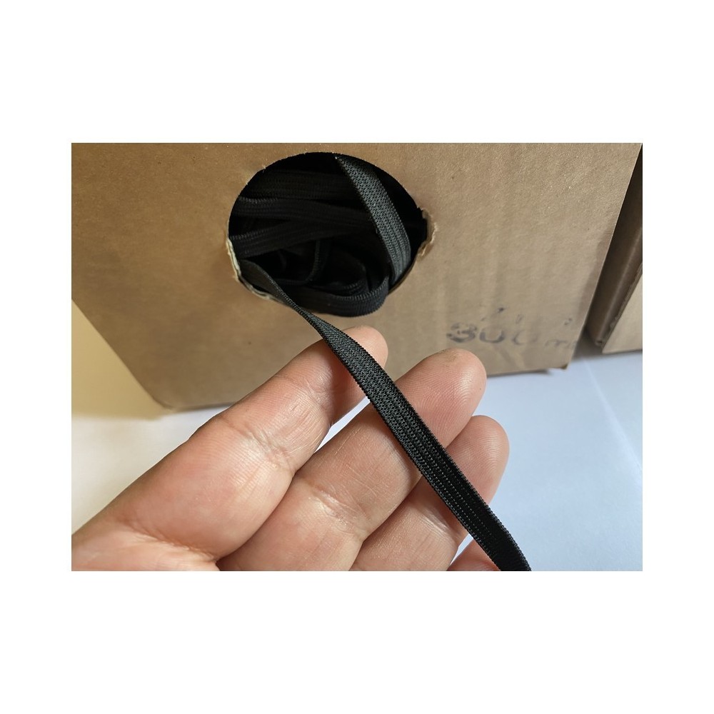 Elastique plat couture en 6 mm spéciale pour fabrication de masques de protection noir ou blanc au mètre au prix de gros. x 100 mètres.