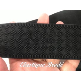 Ruban gomme élastique plat brodé en couleur noir en 40 mm pour la couture et la mercerie.