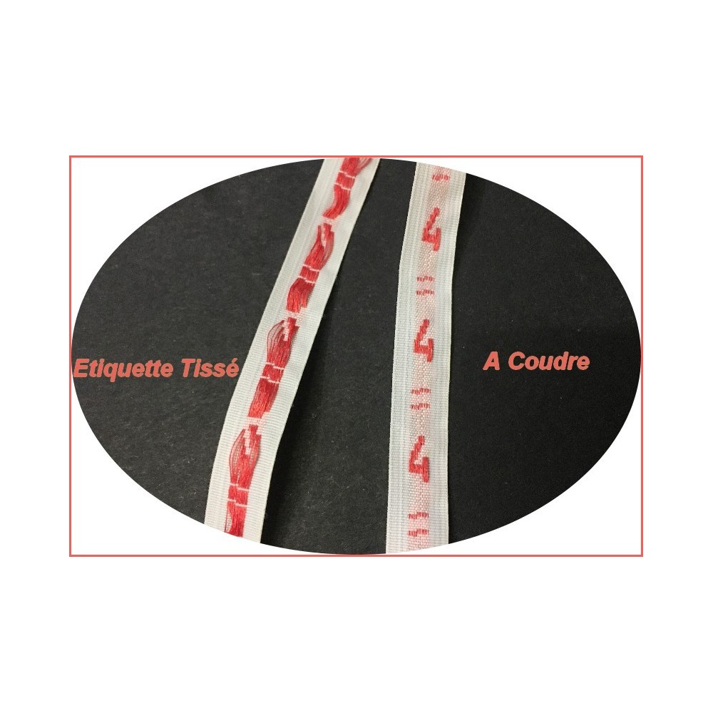 Etiquette de composition pour la fabrication de vetements, à coudre,